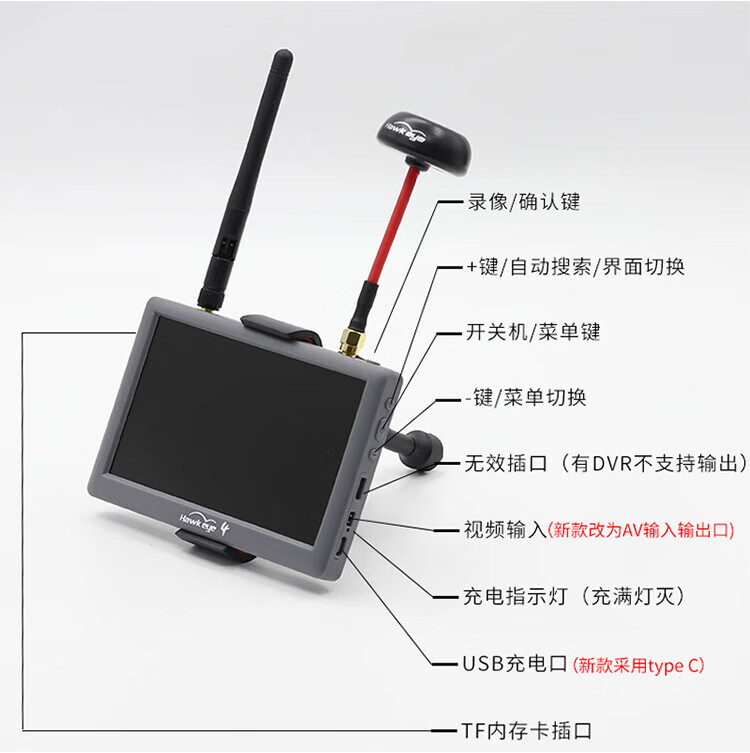 Eagle Eye Sharp View Little Flyer 4 fourth generation FPV display through machine UAV picture transmission tape DVR 5.8G card recording gray standard antenna inner needle fuselage inner hole