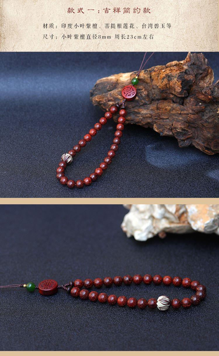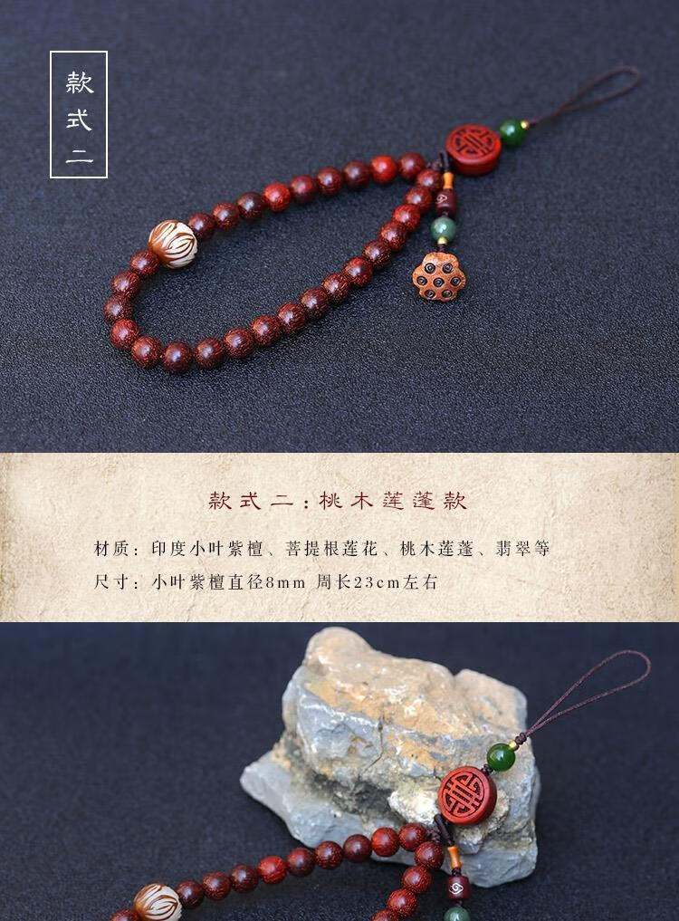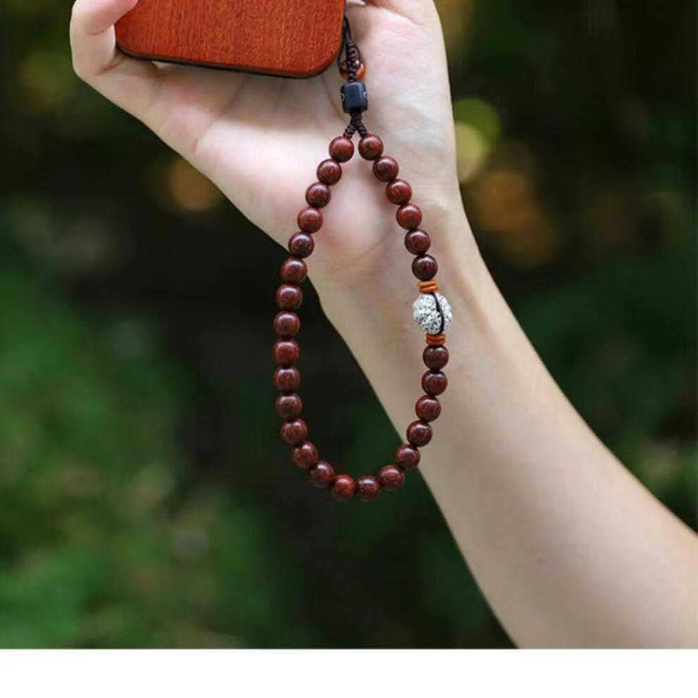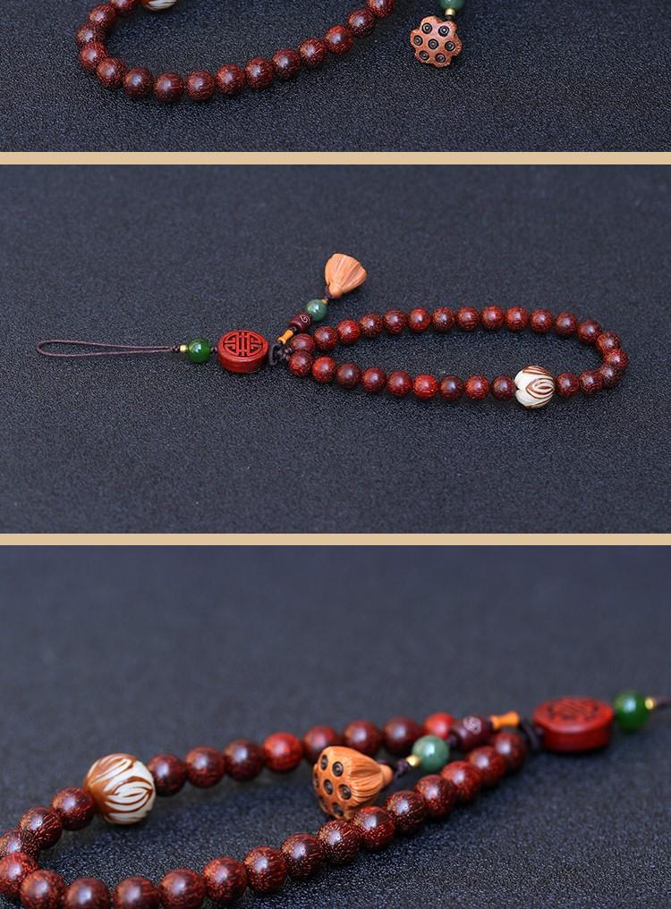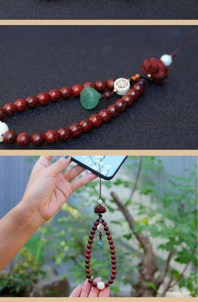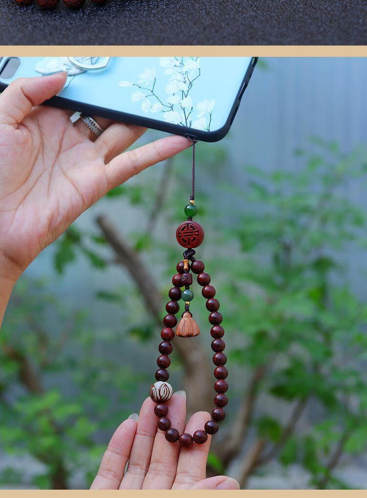 Runhuanian is suitable for Indian lobular red sandalwood mobile phone chain lanyard short Chinese style mobile phone pendant anti-lost rope wrist rope main picture style