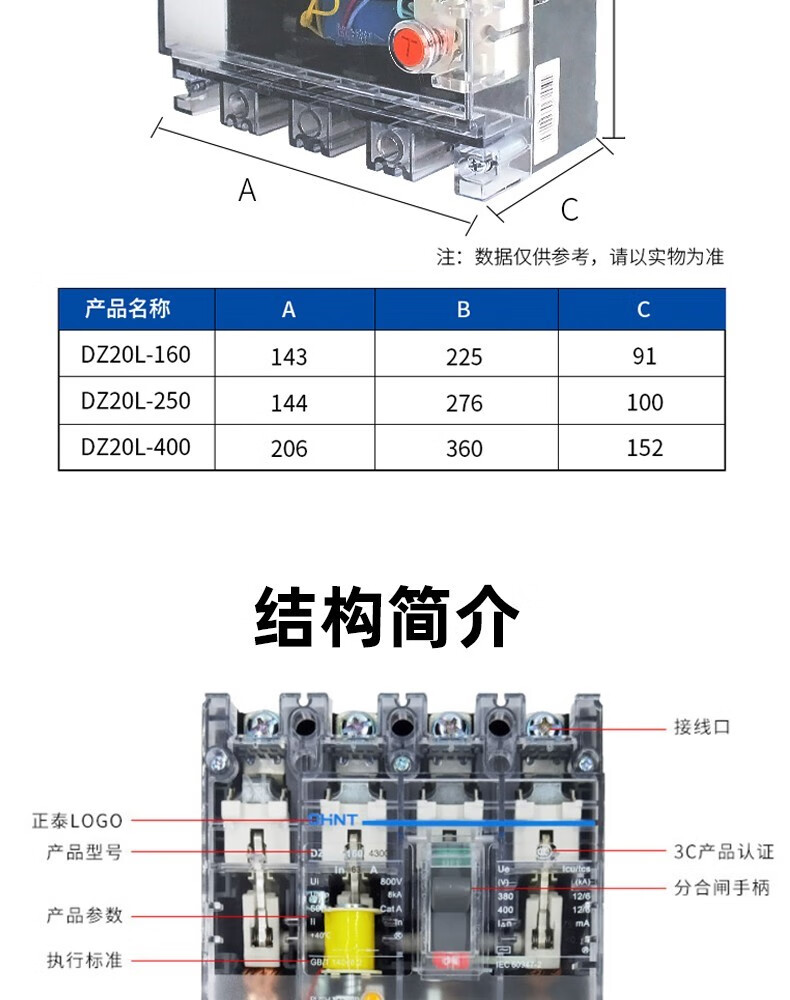 Transparent leakage circuit breaker DZ20L-160/4300 4003n300 air switch 4P smart 400A 3P+N