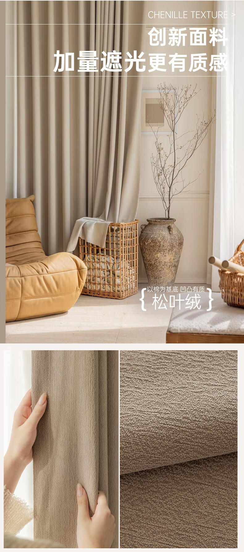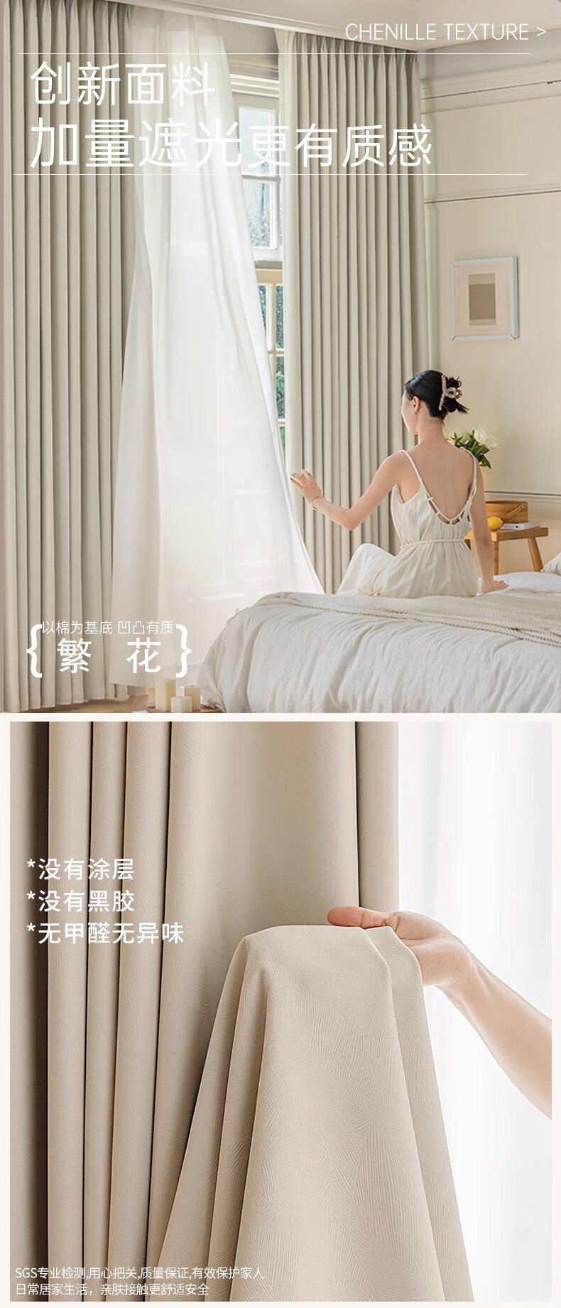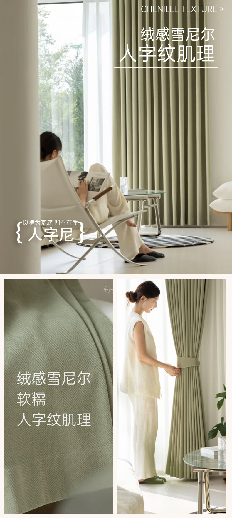 Ruzhe whole house curtain customization bedroom full blackout package door-to-door measurement and installation Shaoxing Keqiao chenille light luxury simple style lime milk green rice