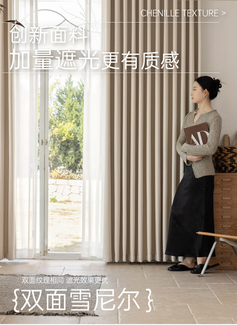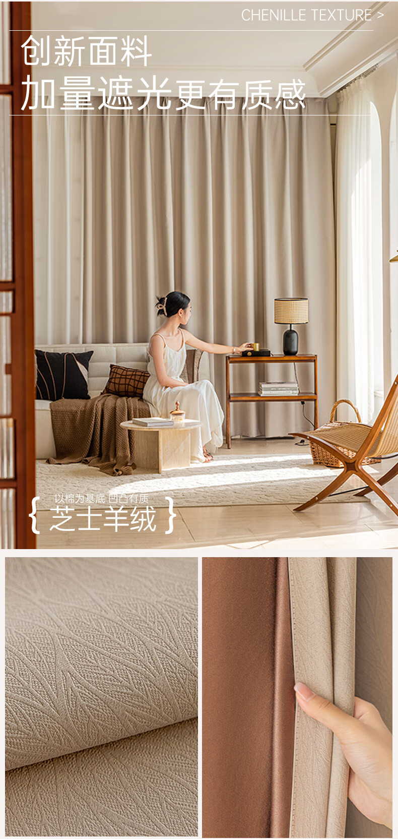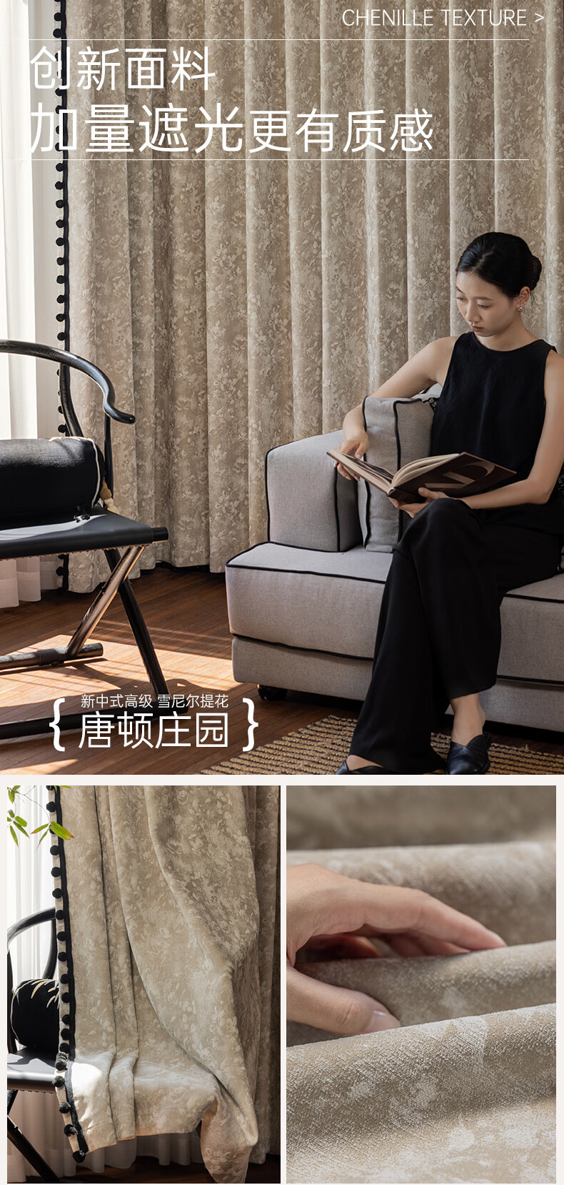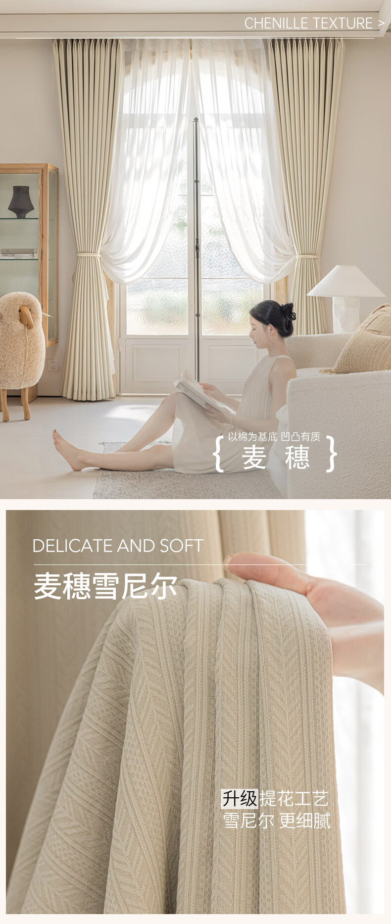 Ruzhe whole house curtain customization bedroom full blackout package door-to-door measurement and installation Shaoxing Keqiao chenille light luxury simple style lime milk green rice