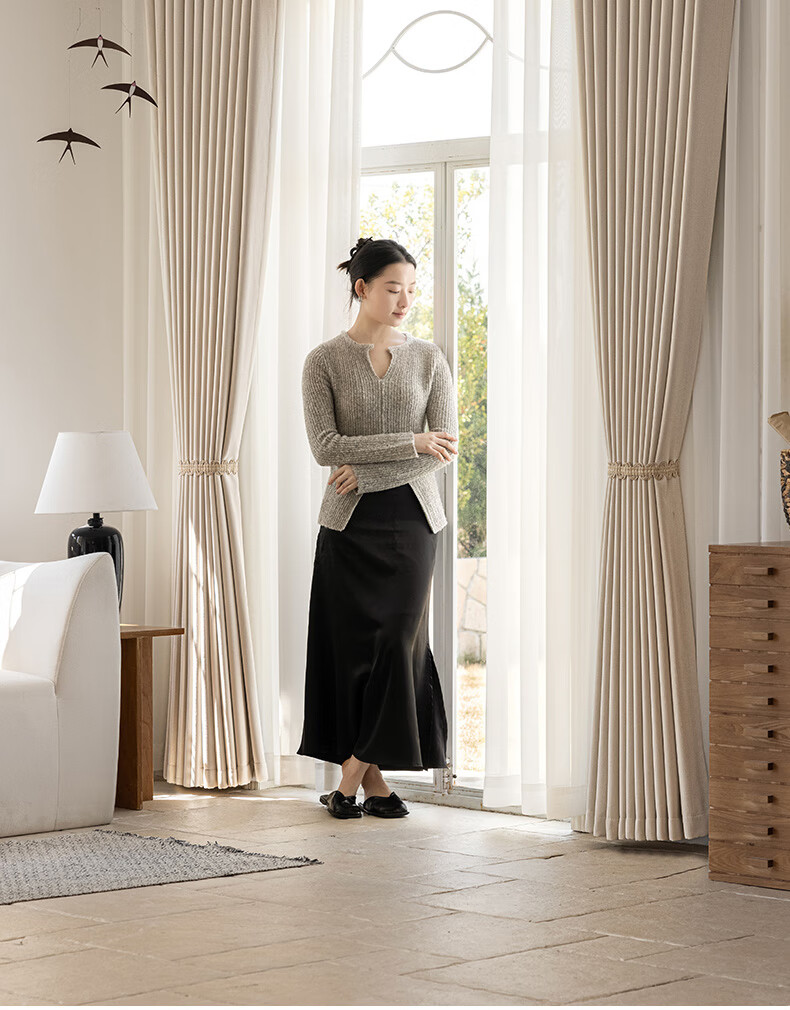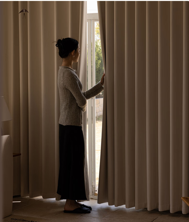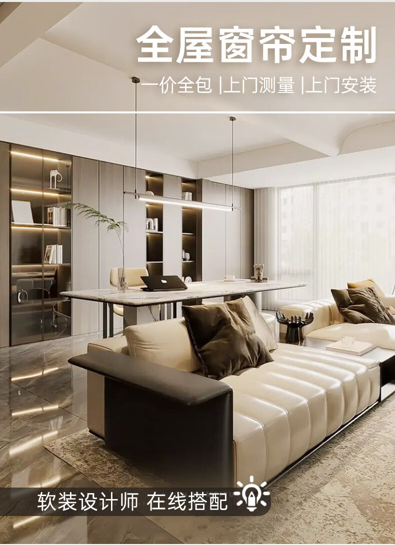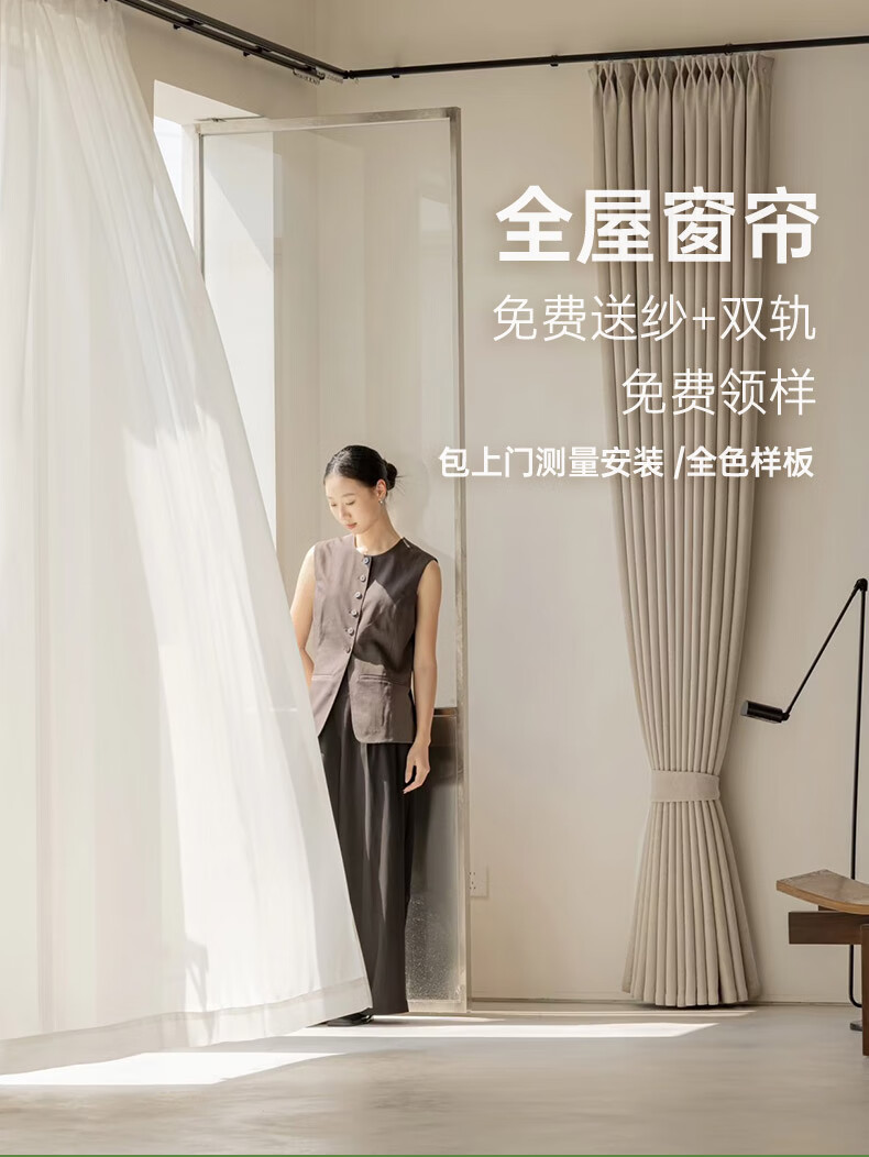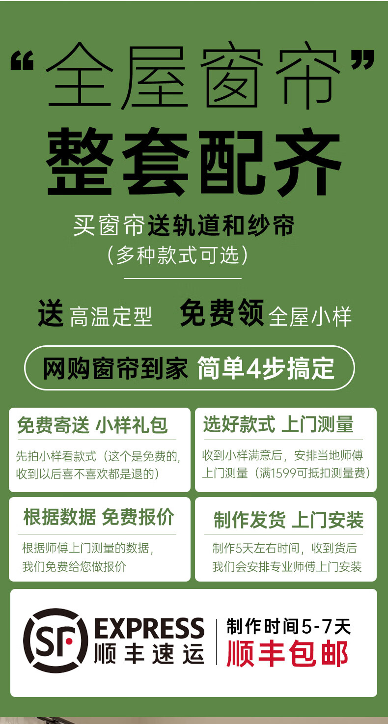 Ruzhe whole house curtain customization bedroom full blackout package door-to-door measurement and installation Shaoxing Keqiao chenille light luxury simple style lime milk green rice