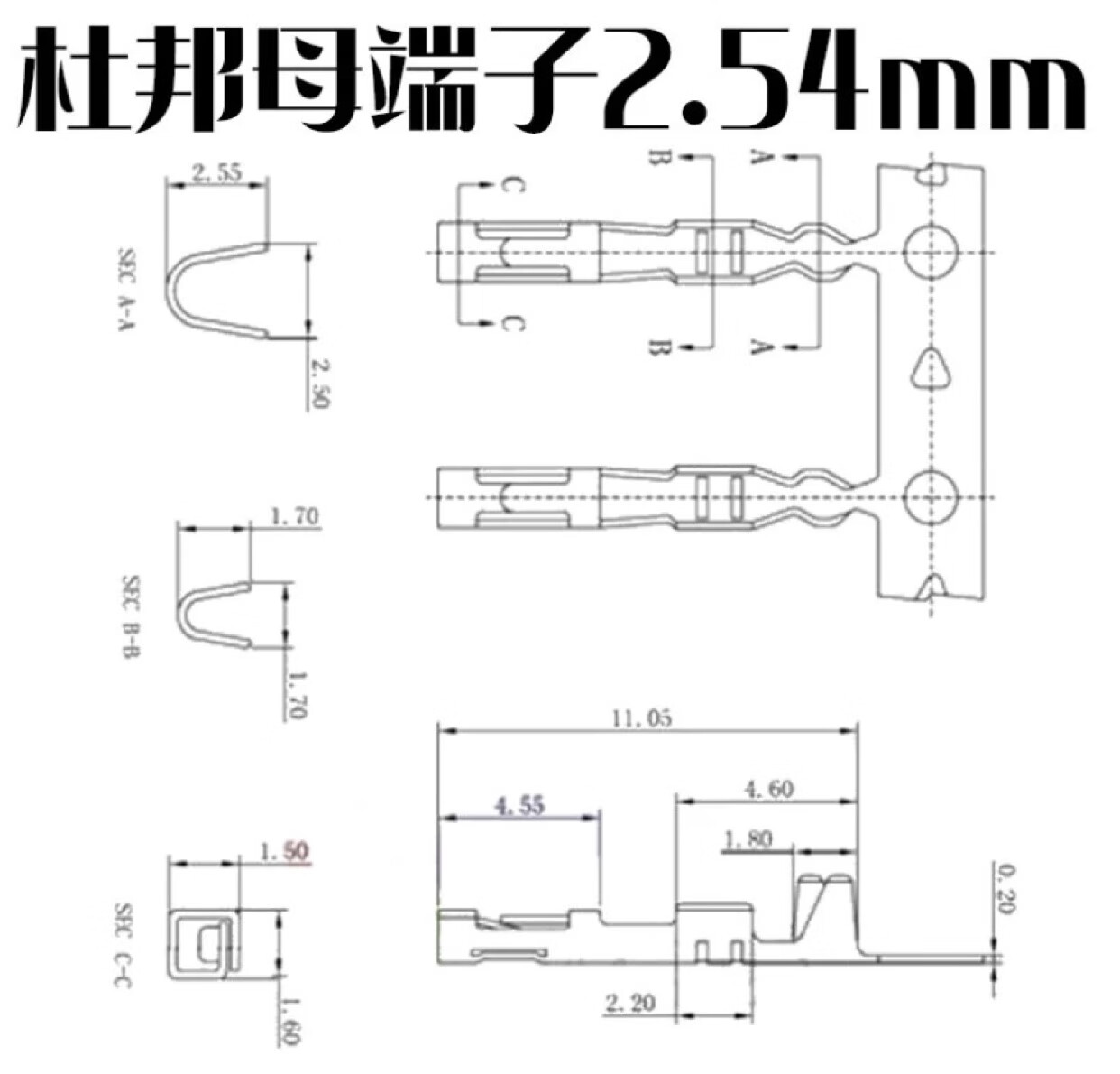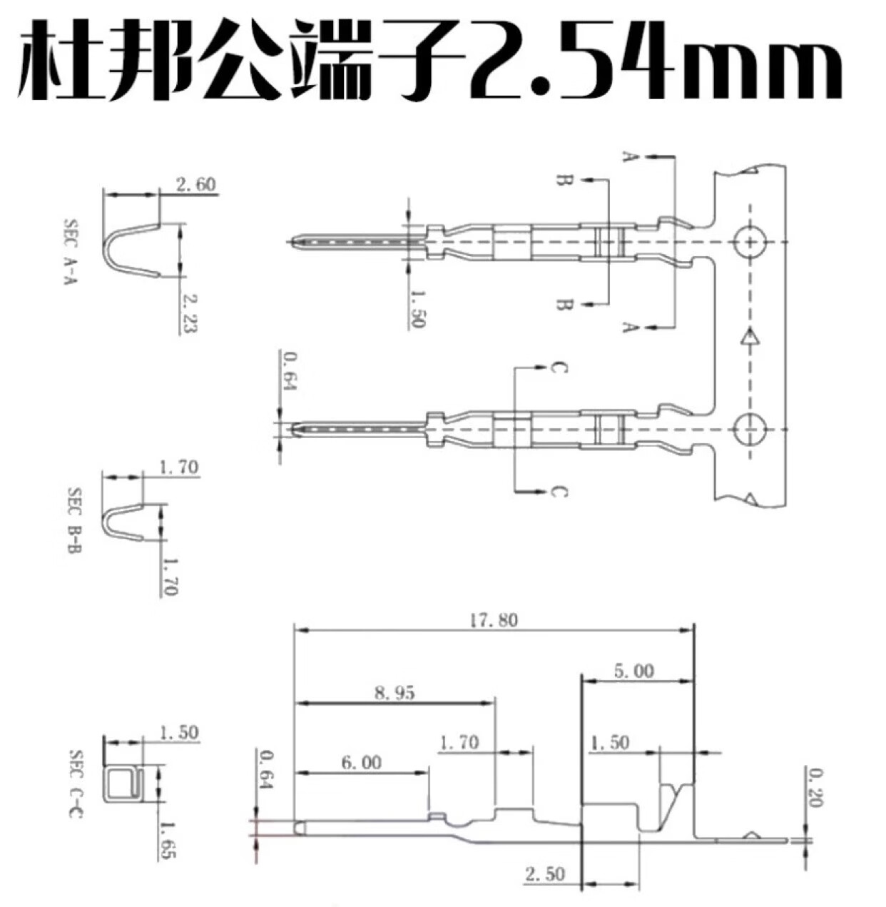 2.54 Dupont wire terminal cold crimp connector spring crimped wire male and female ends male and female pins 50 2.54 Dupont male ends (50 pcs)