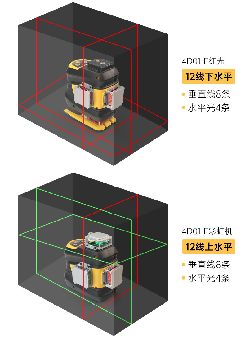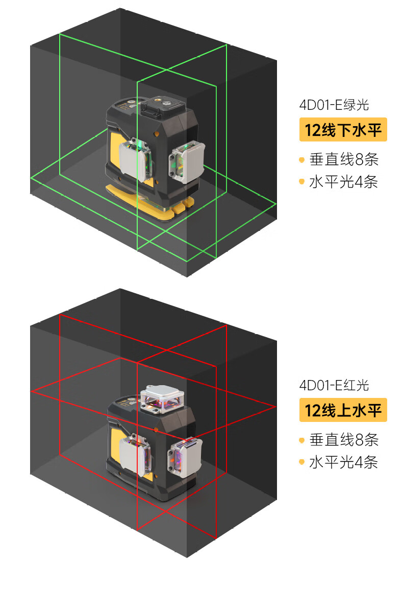 Daige 4-electric 12-wire level laser infrared outdoor high-precision strong light thin line automatic leveling line meter 8-wire green light upper level 4-wire