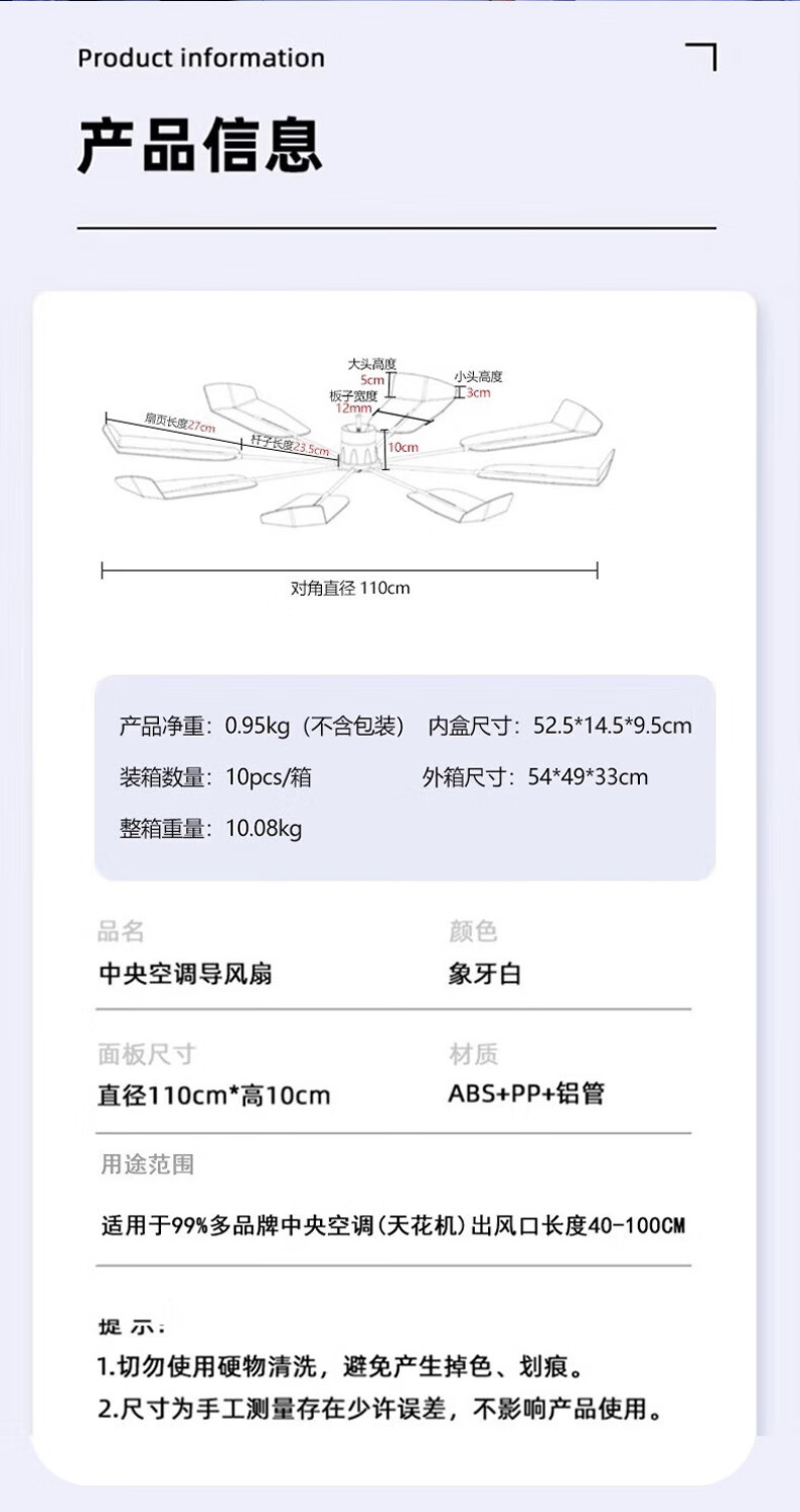 Hange-S9 central air conditioner ceiling unit anti-direct blow fan noiseless 360-degree rotating fan blade air conditioner windshield office ceiling unit air conditioner air deflector guide fan upgraded hanging version/applicable to (Gree ceiling unit). Applicability rate is more than 90%