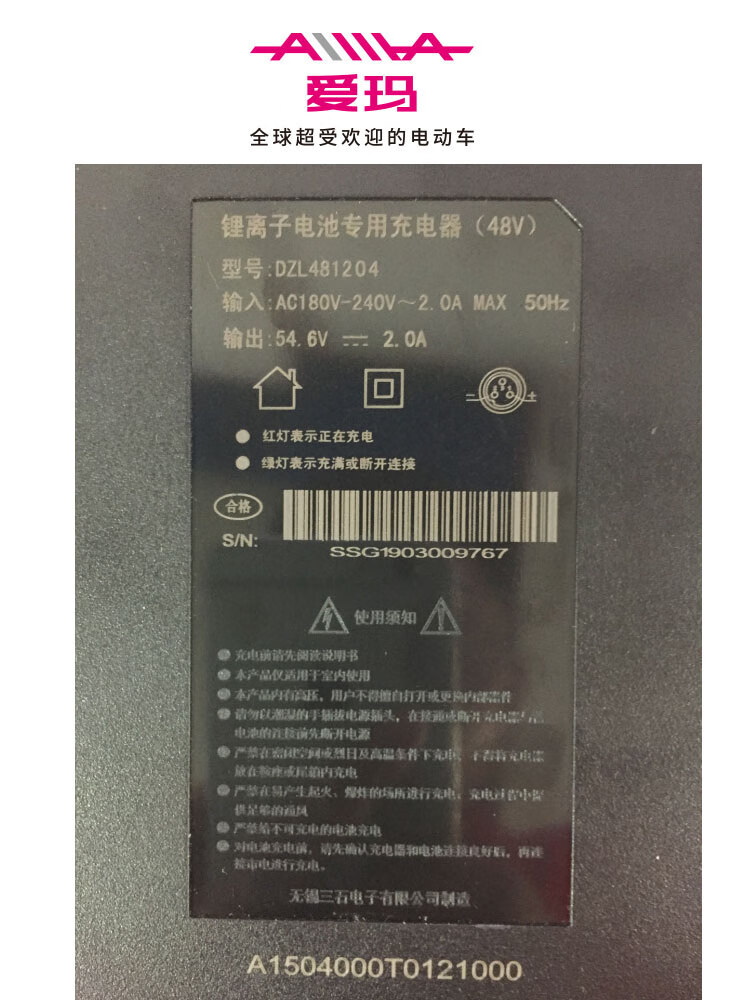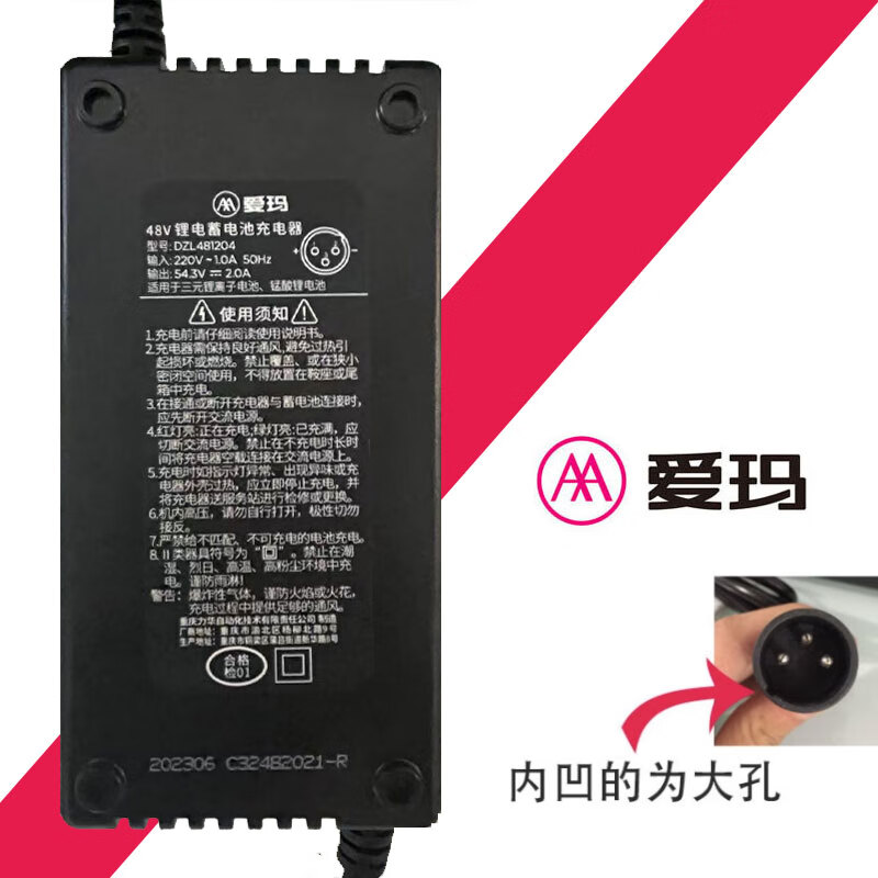 Jiyangxiang electric vehicle charger official 48v12ah54.6v2A lithium battery original cannon head small black mark small hole 48V12Ah Emma Tangze original small