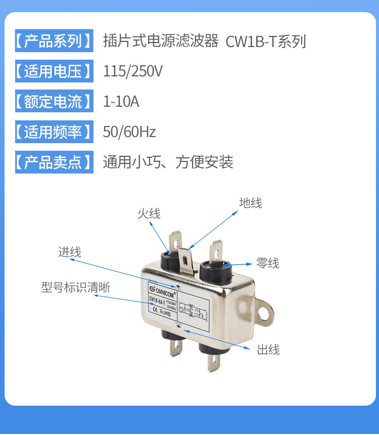 Taiwan omnicom power filter 220V10ACW1B-10A-T 6A CW1B-6A-T