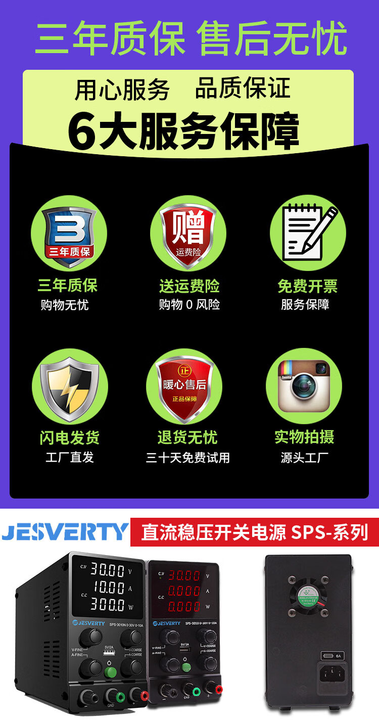 JESVERTY High-power adjustable DC regulated power supply 30V60V5A10A mobile phone repair power supply SPS-6005 four-digit display 60V5A300W red screen