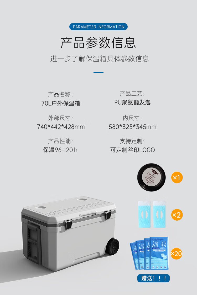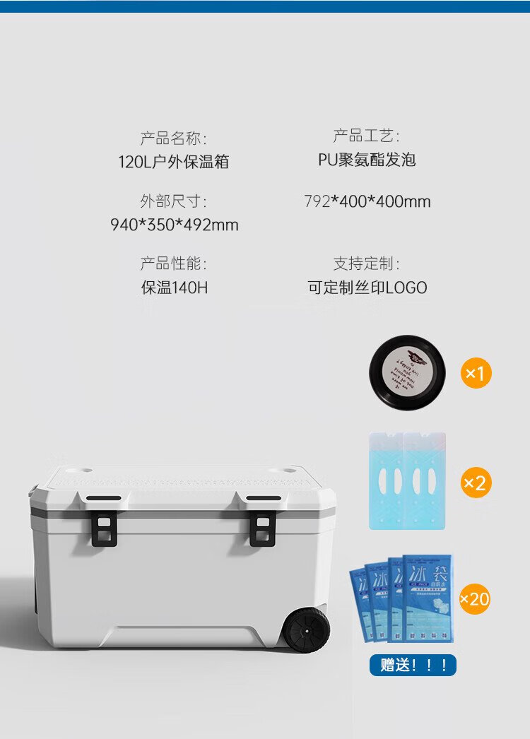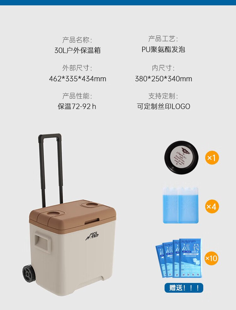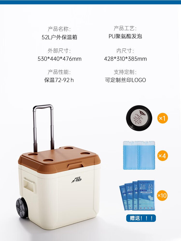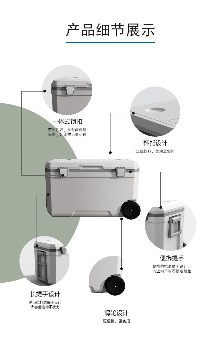 Ice trip car outdoor trolley insulated box refrigerated large capacity stall camping insulated box fishing box 40L white gray