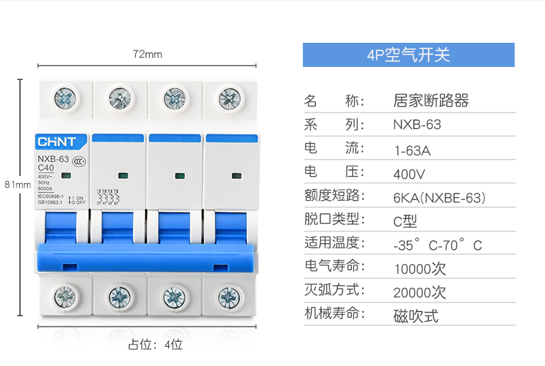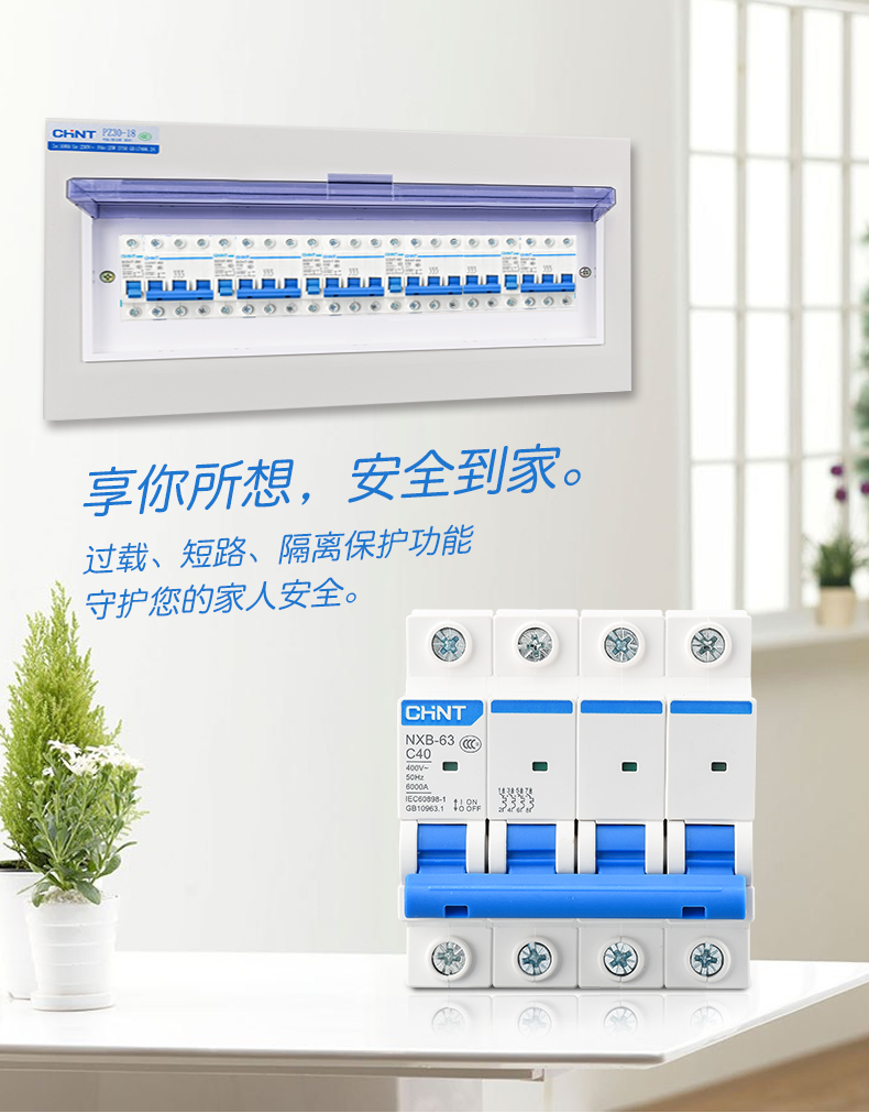 Chint circuit breaker NXB-63 three-phase four-wire air switch 380v air switch DZ47 upgraded model 10A-63A 4p 32A