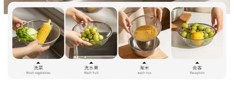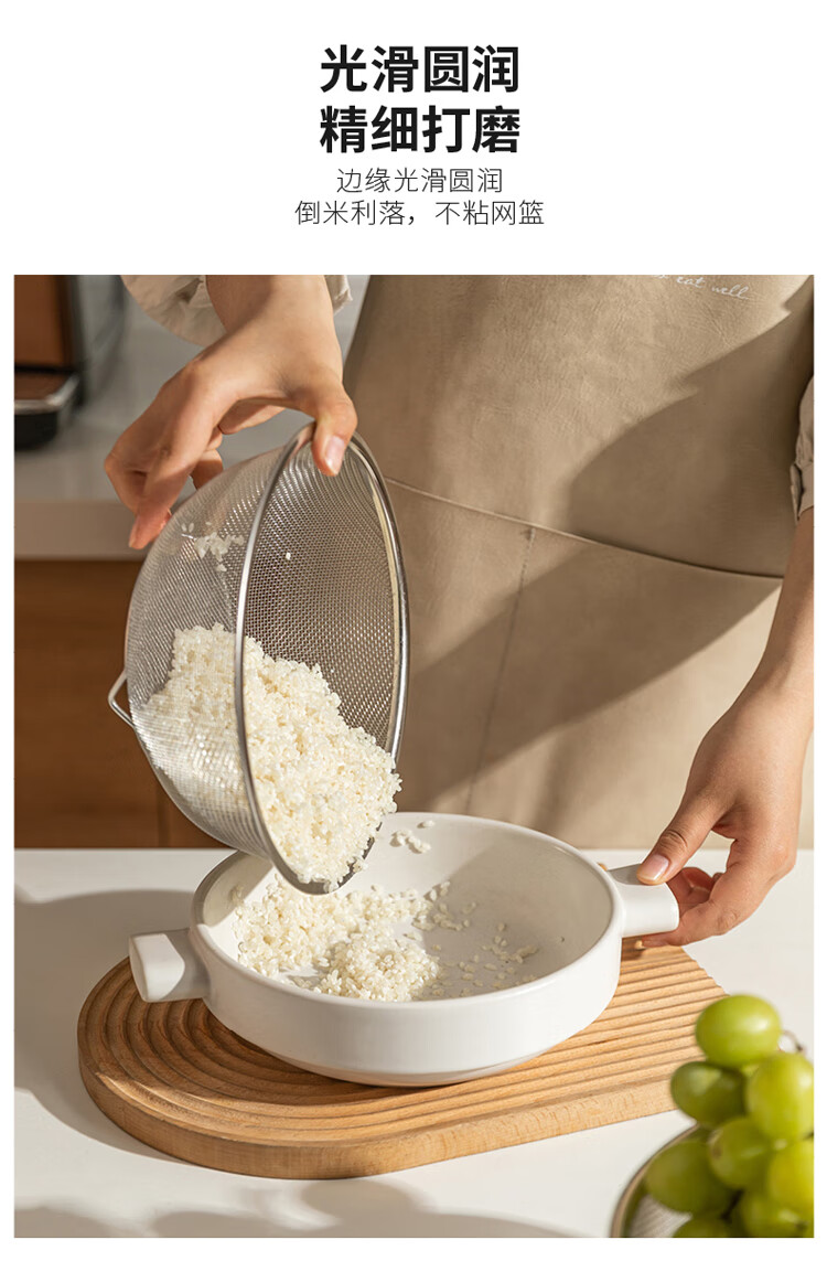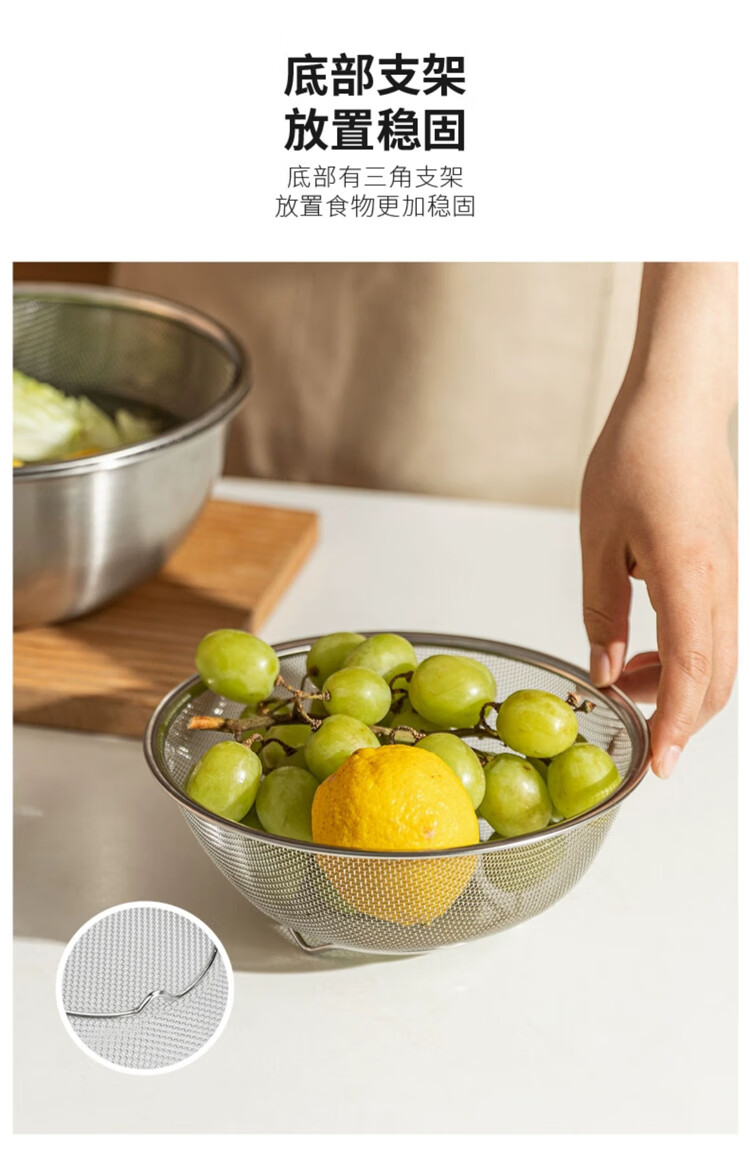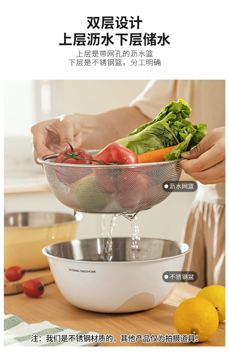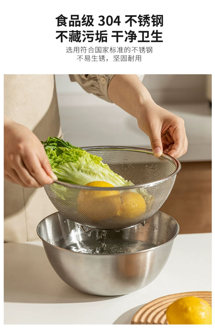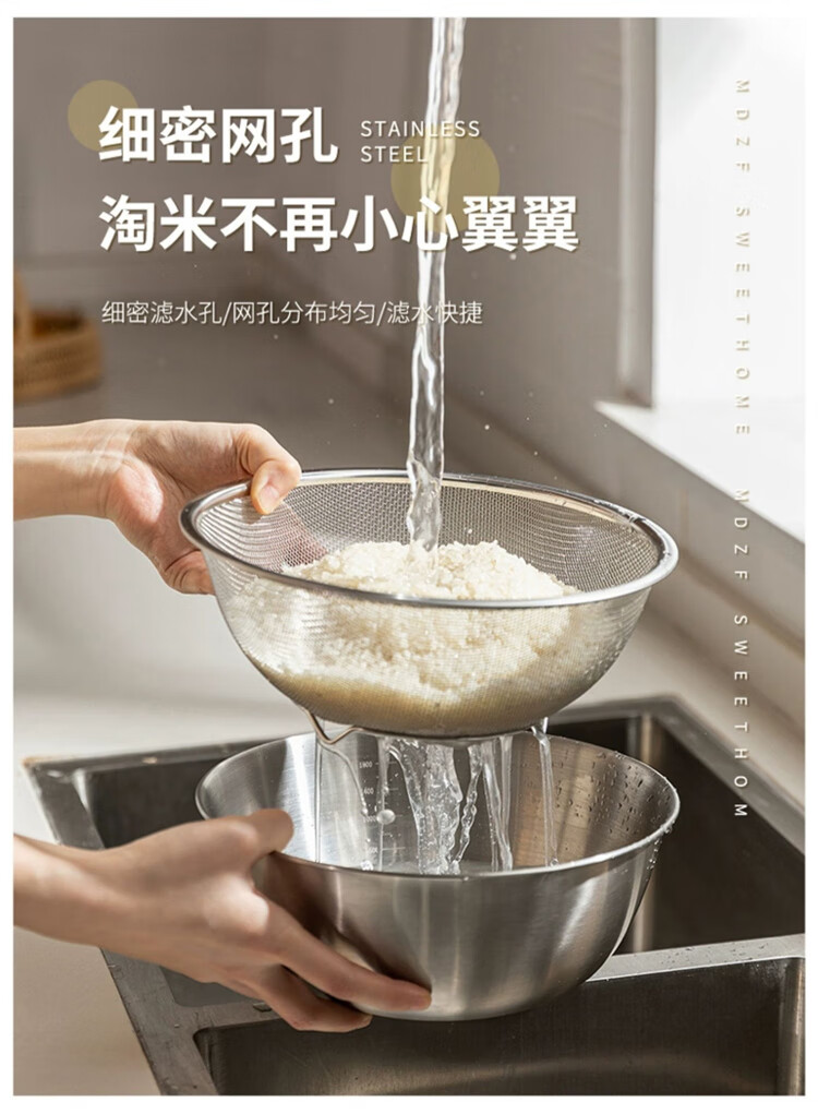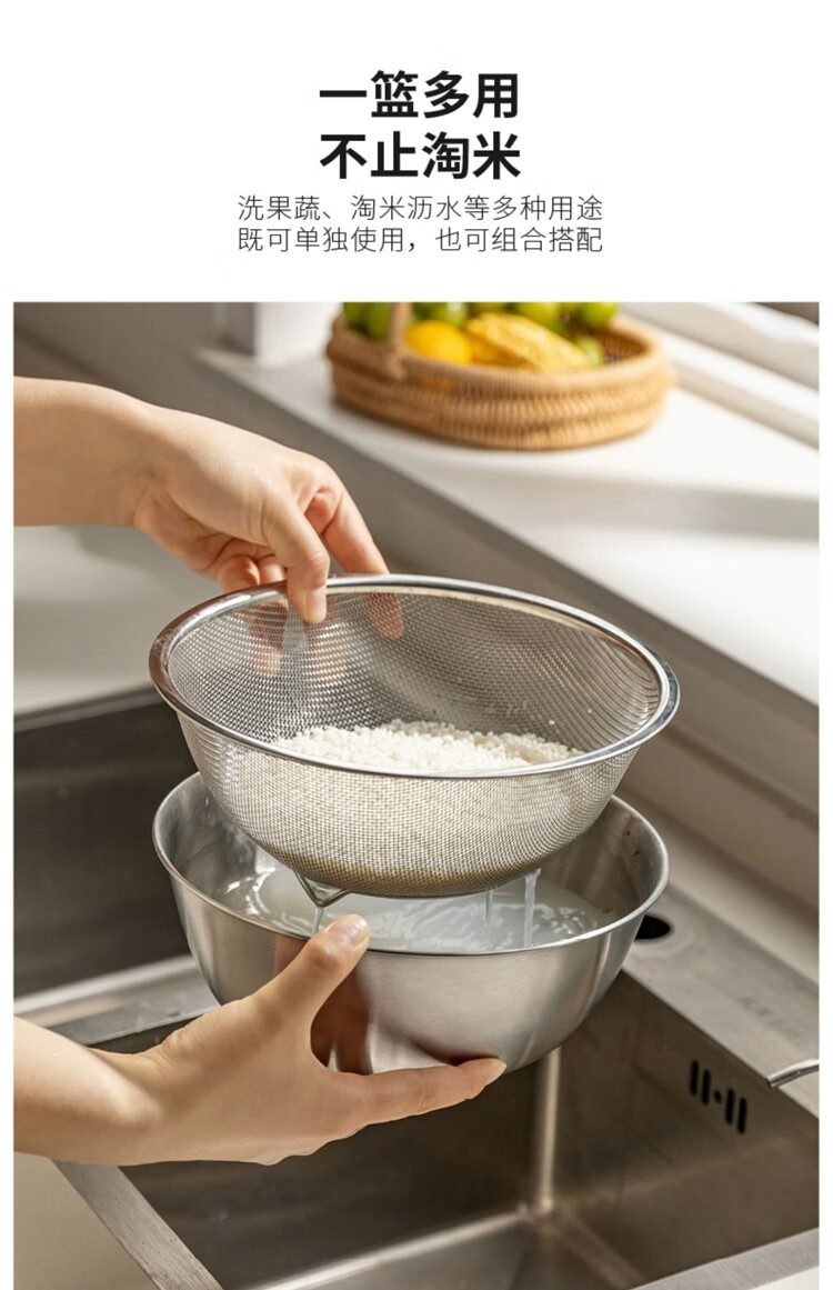 Home KATEI STORY Kitchen 304 stainless steel leaky basin household food-grade vegetable sink drain basket rice washing artifact double-layer rice washing sieve drain basket + stainless steel basin (22cm)