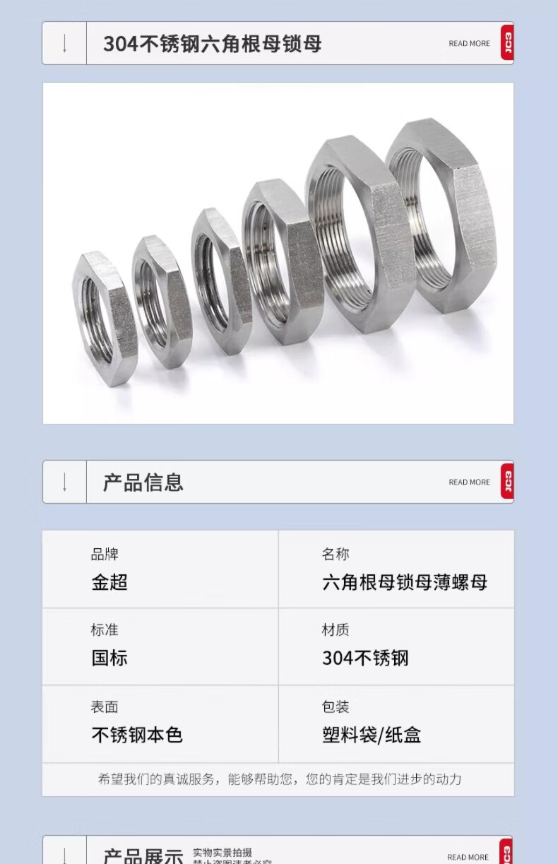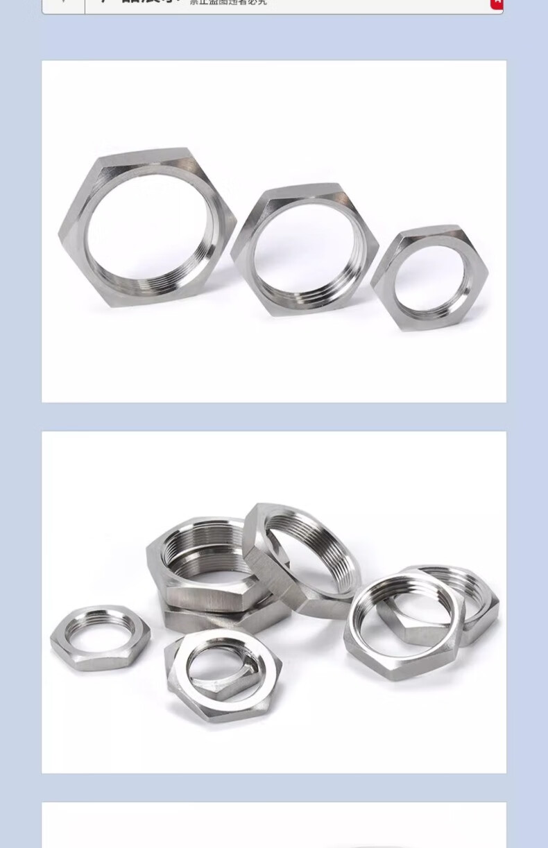 Jinchao 304 stainless steel hexagonal thin nut root female water tank joint locking piece faucet lock and cap British pipe thread nut G1/2=4 points (2 pieces)