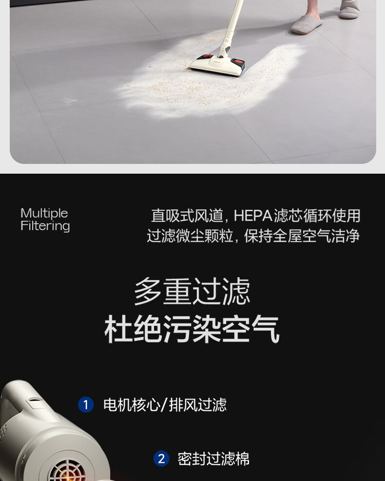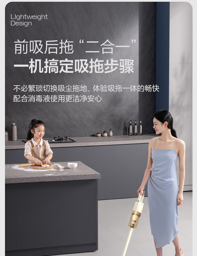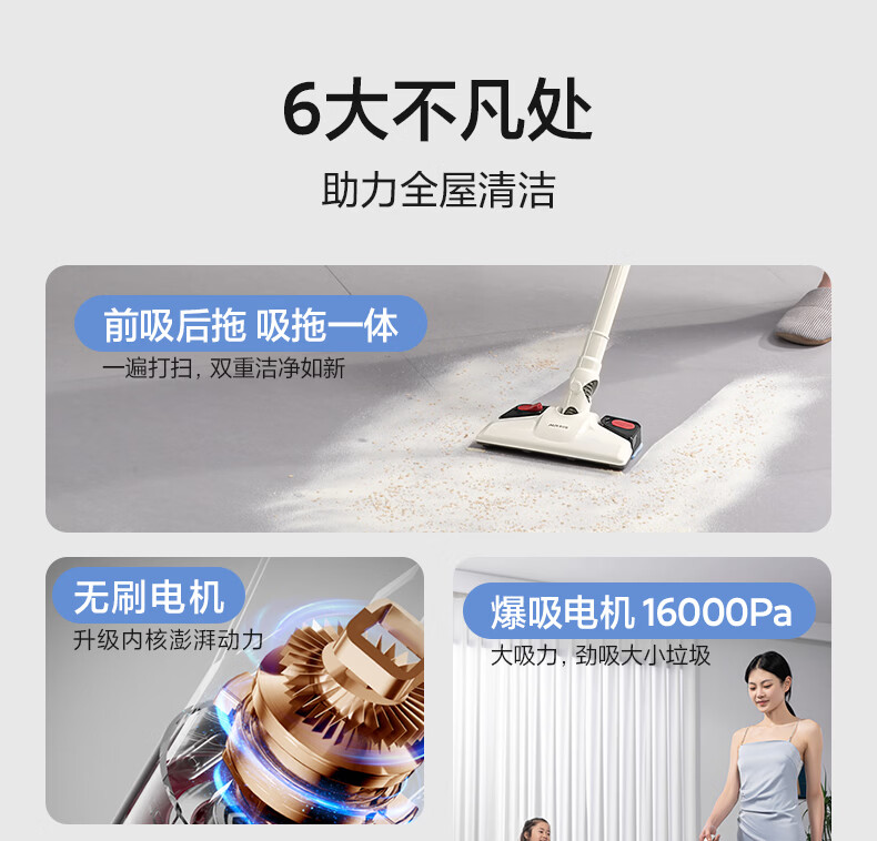 Oaks wireless suction and mopping all-in-one vacuum cleaner household lightweight pet portable dust collector high power high suction dry suction and wet mopping multi-purpose AXC-11DS527B brushless motor flagship version 16000Pa explosive suction + wet mopping in one