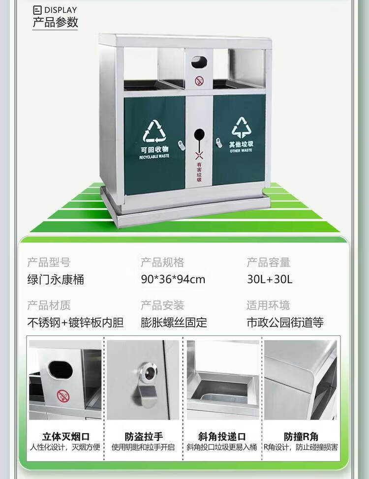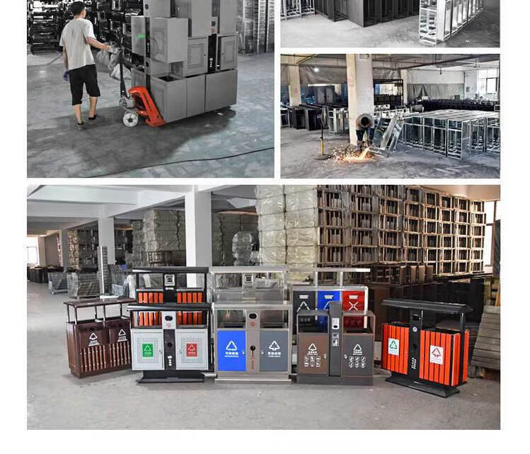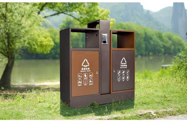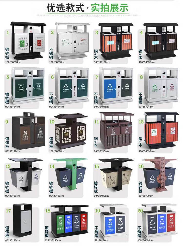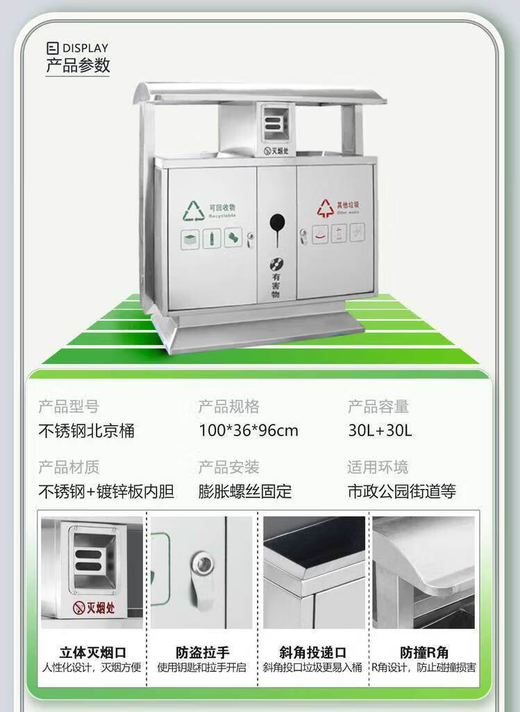 Commercial large sanitation outdoor park scenic area community classification peel box stainless steel outdoor trash can customization luxury steel wooden barrel