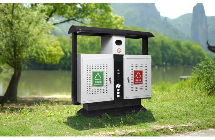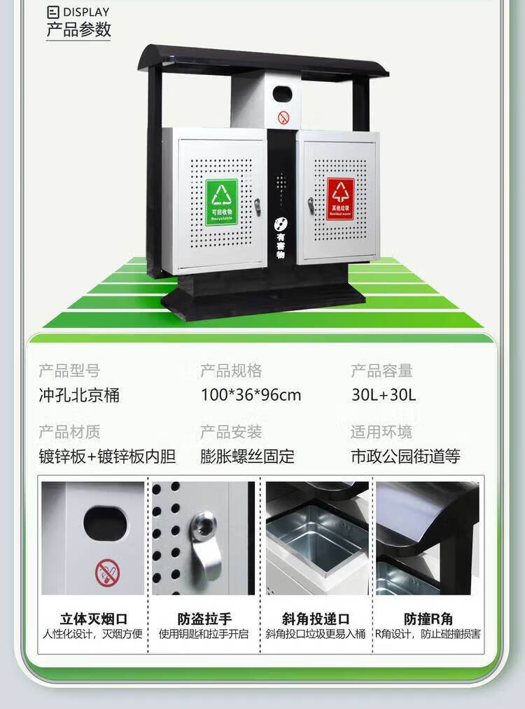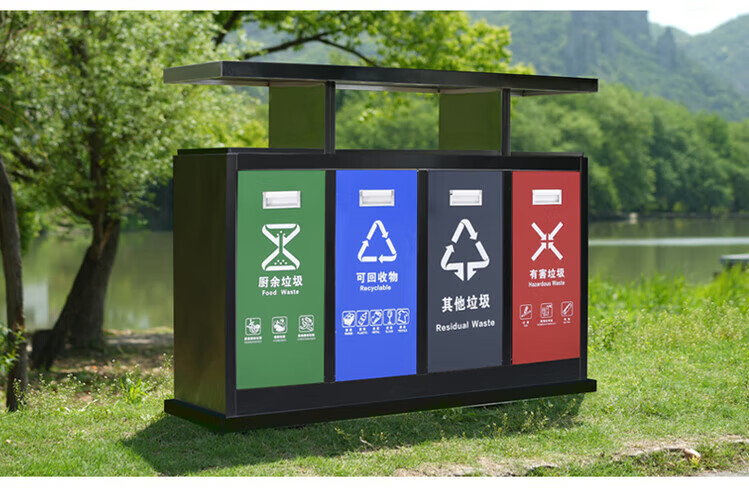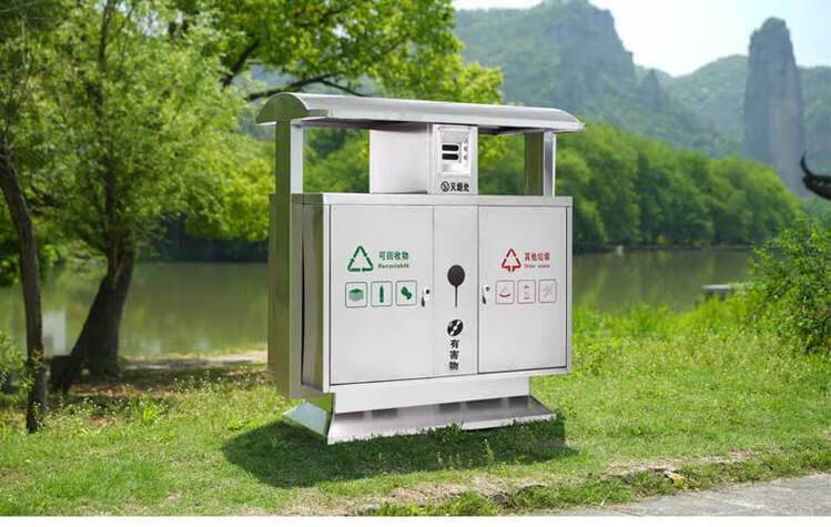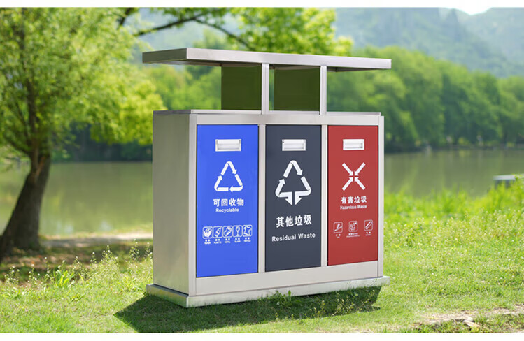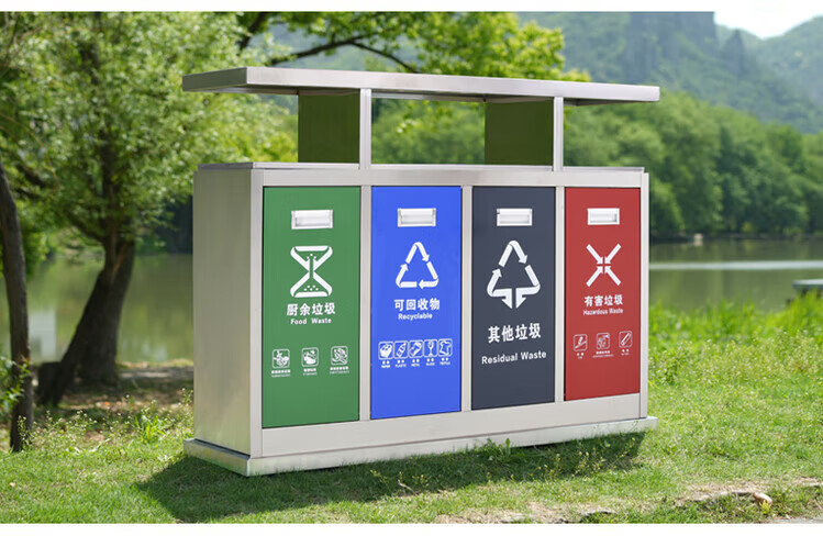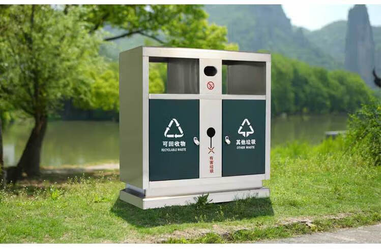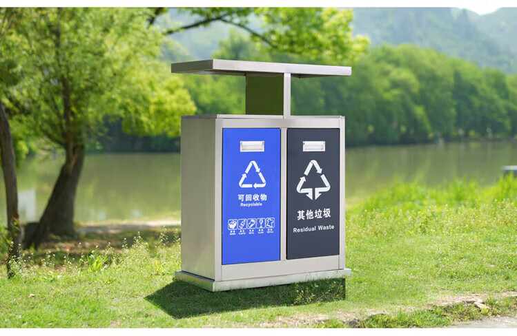 Commercial large sanitation outdoor park scenic area community classification peel box stainless steel outdoor trash can customization luxury steel wooden barrel