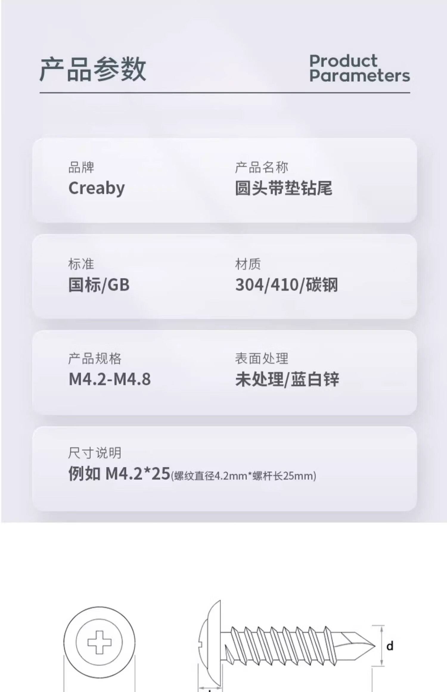 Creaby410/304 stainless steel cross round head padded drill tail screws galvanized large flat head self-tapping self-drilling dovetail screws 4.2x13 (20 pieces) 304 material