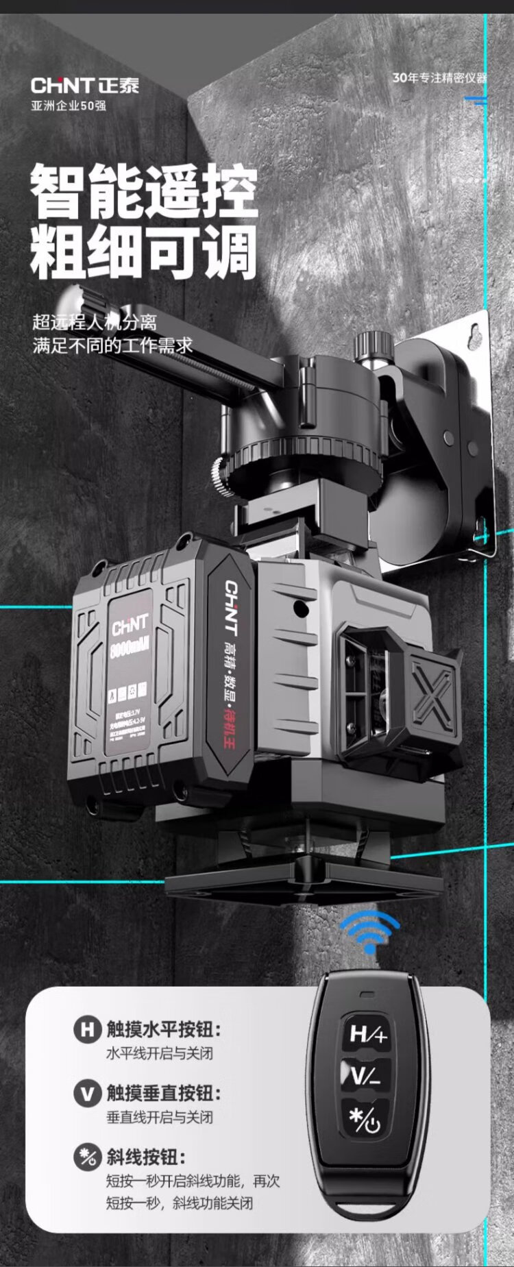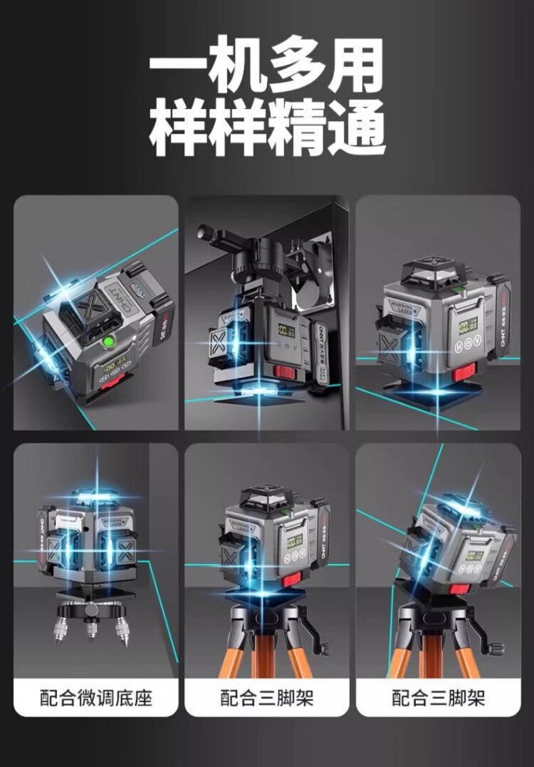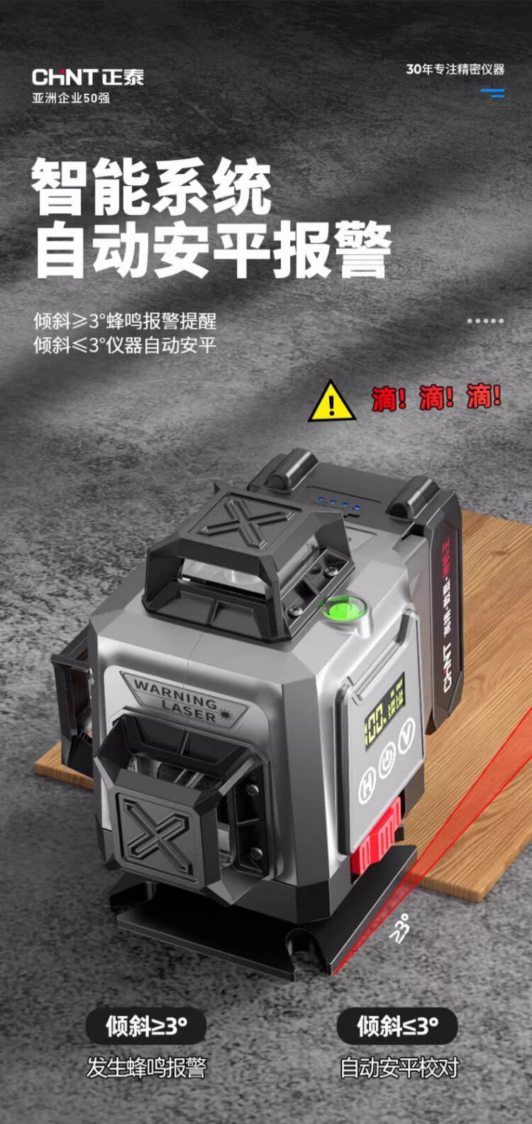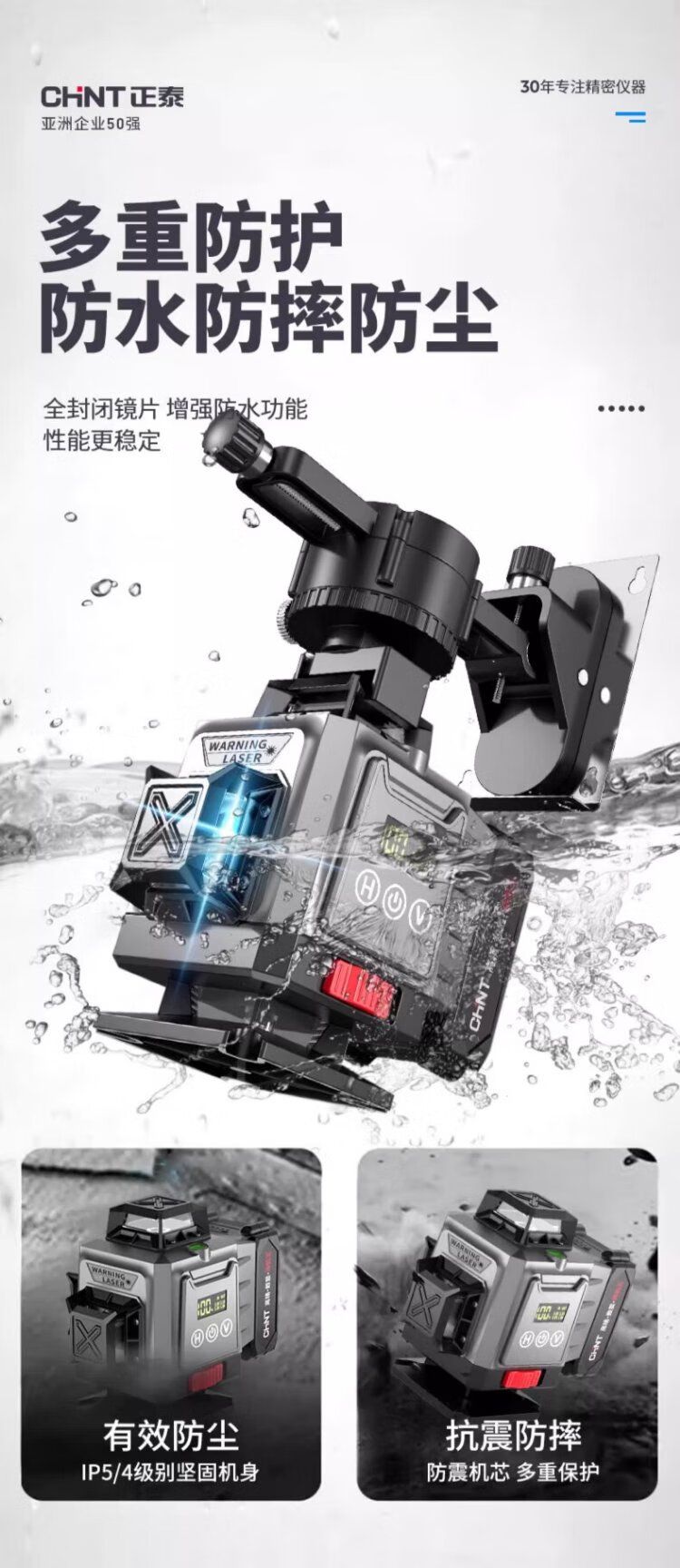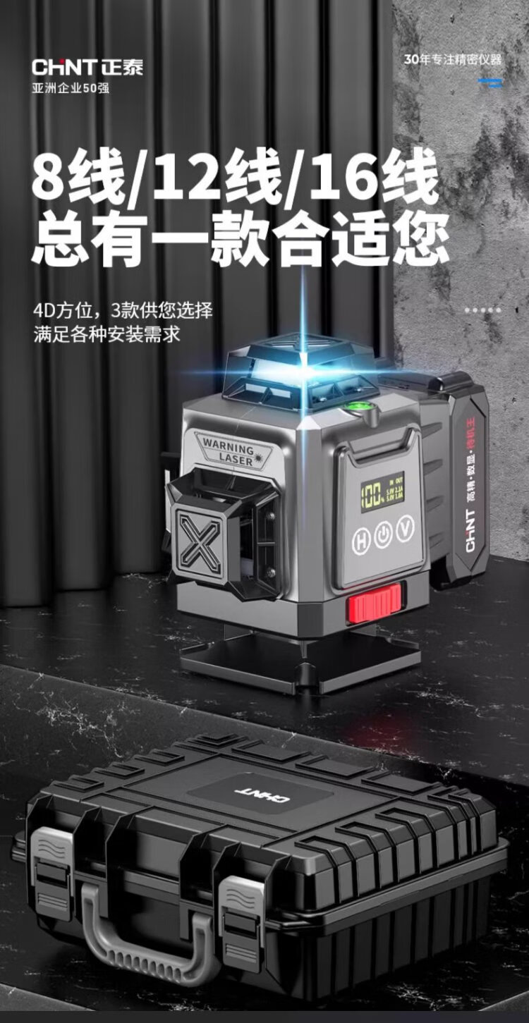 Chint 12-line high-precision infrared level green light laser outdoor strong light portable wall-mounted floor level meter green light 12-line wall rack + dual power + lifting table