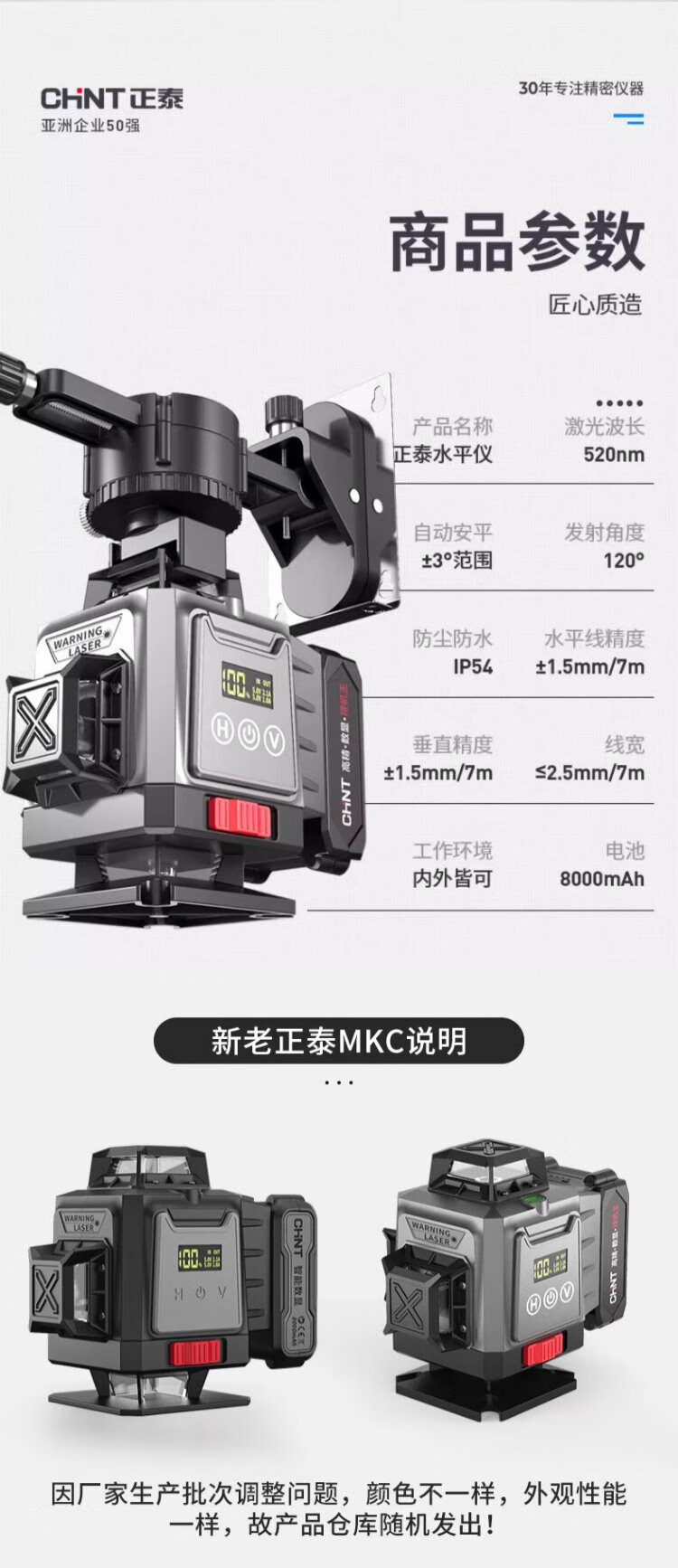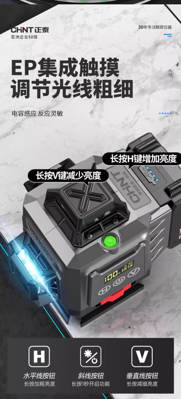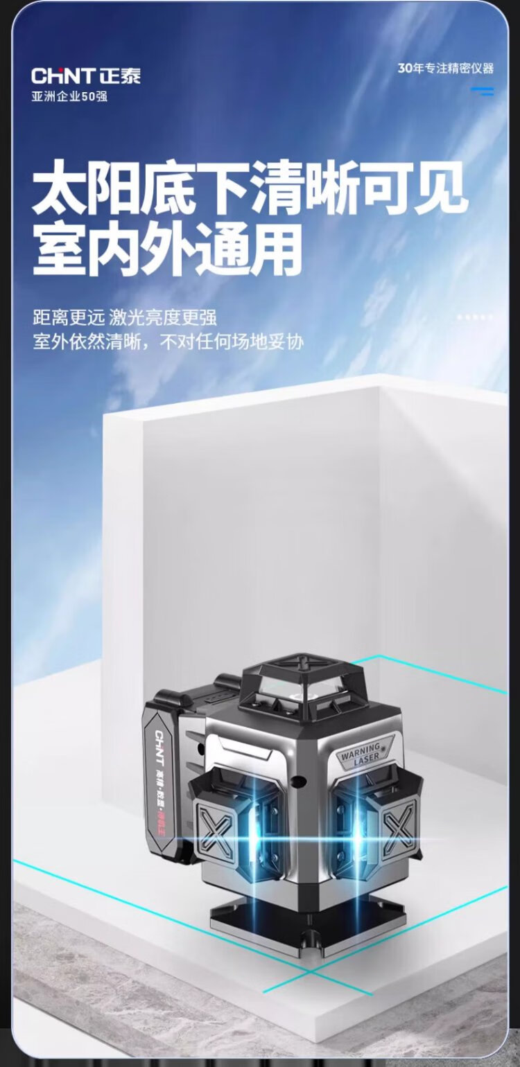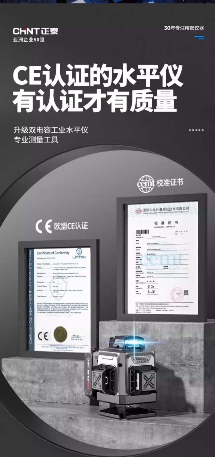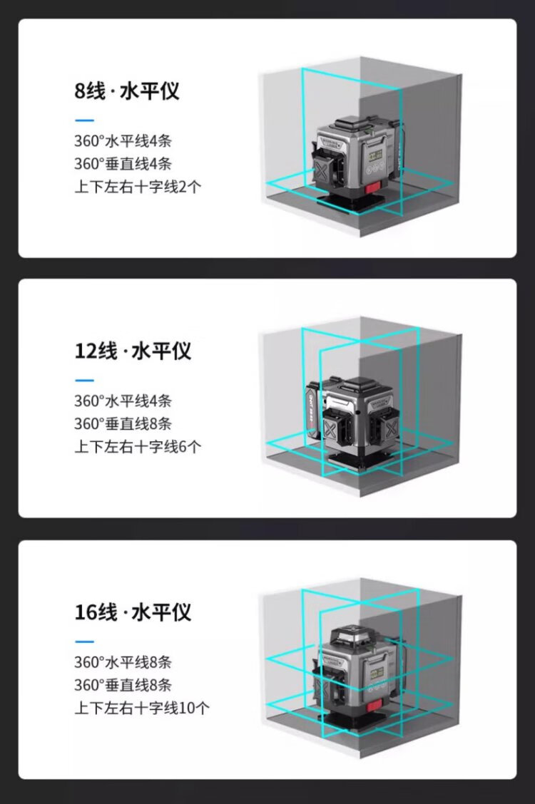 Chint 12-line high-precision infrared level green light laser outdoor strong light portable wall-mounted floor level meter green light 12-line wall rack + dual power + lifting table