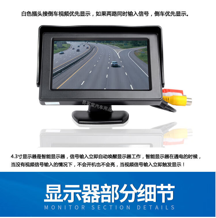 High-definition 4.3-inch vehicle-mounted display 12V24V universal truck two-way AV reversing image desktop display 4.3-inch display bare metal