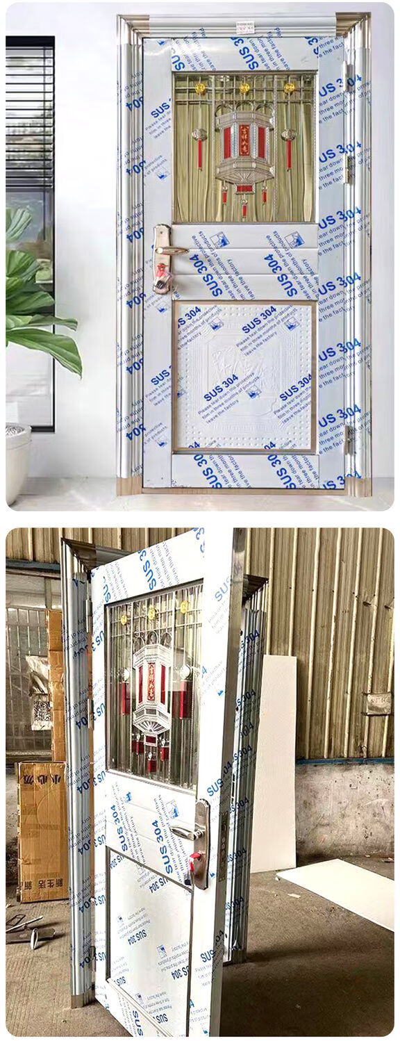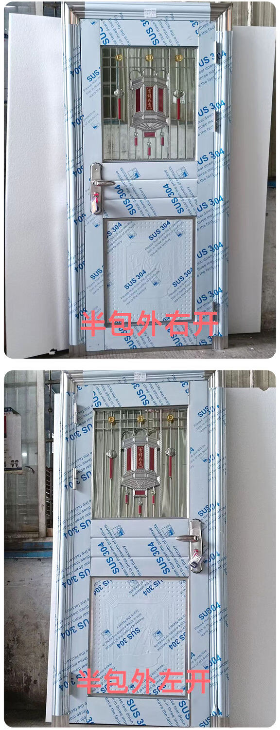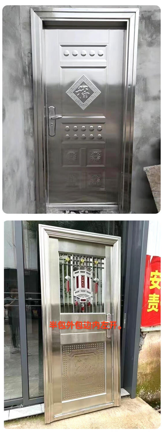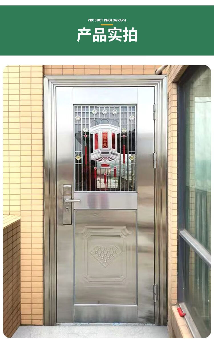 Qinkai Stainless Steel Customized Entry Security Door Entry Door Balcony Door 201 Single Door Door Thickened 304 1970/960 Outsourcing External Left Opening (Right Lock) Half Wave Flower Branch Style (Including Hardware)