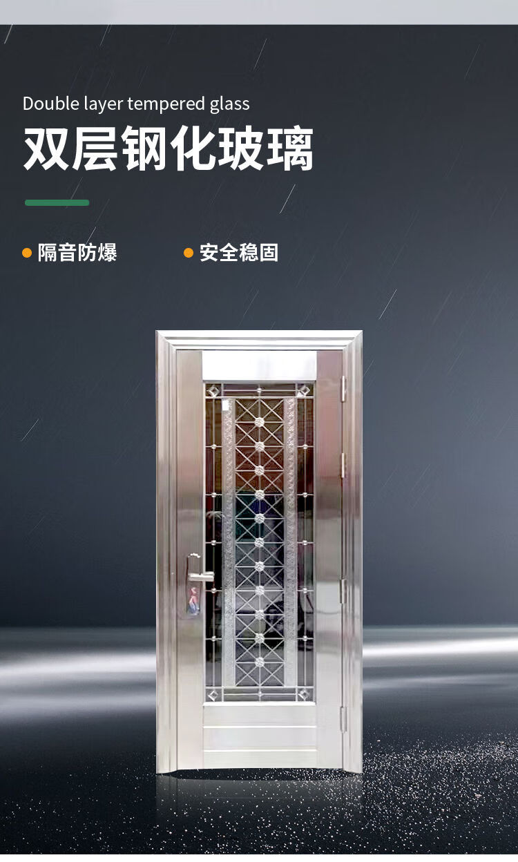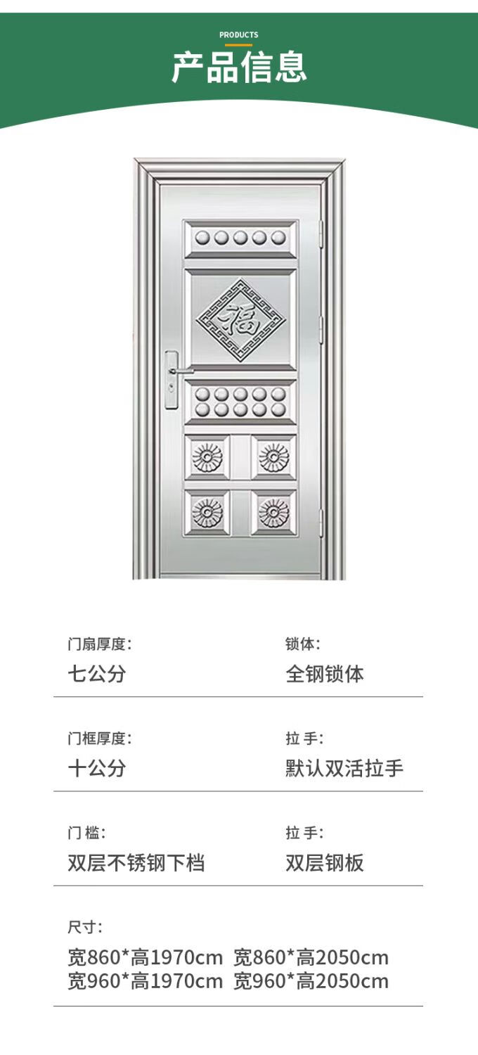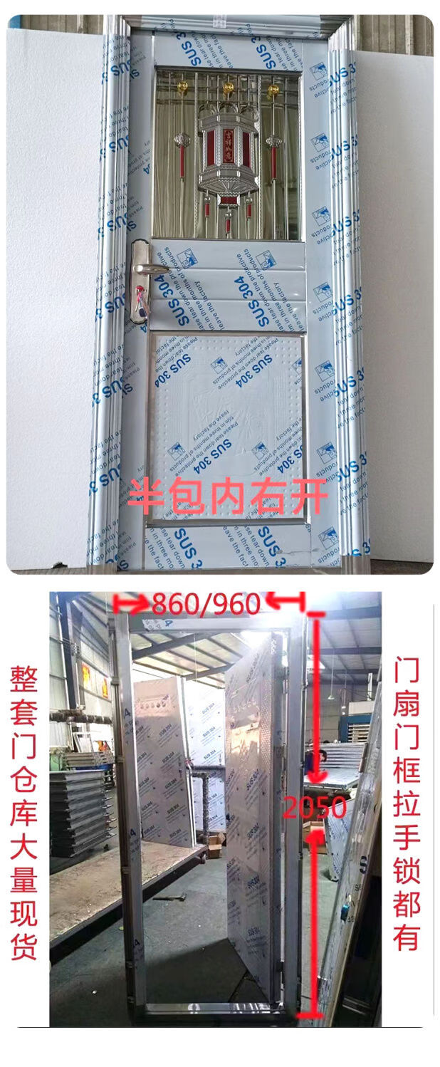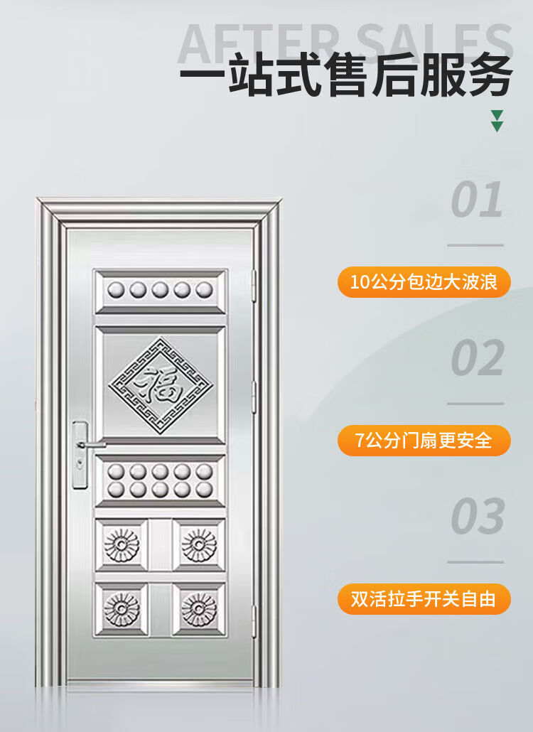 Qinkai Stainless Steel Customized Entry Security Door Entry Door Balcony Door 201 Single Door Door Thickened 304 1970/960 Outsourcing External Left Opening (Right Lock) Half Wave Flower Branch Style (Including Hardware)