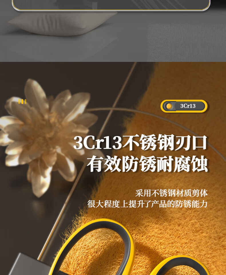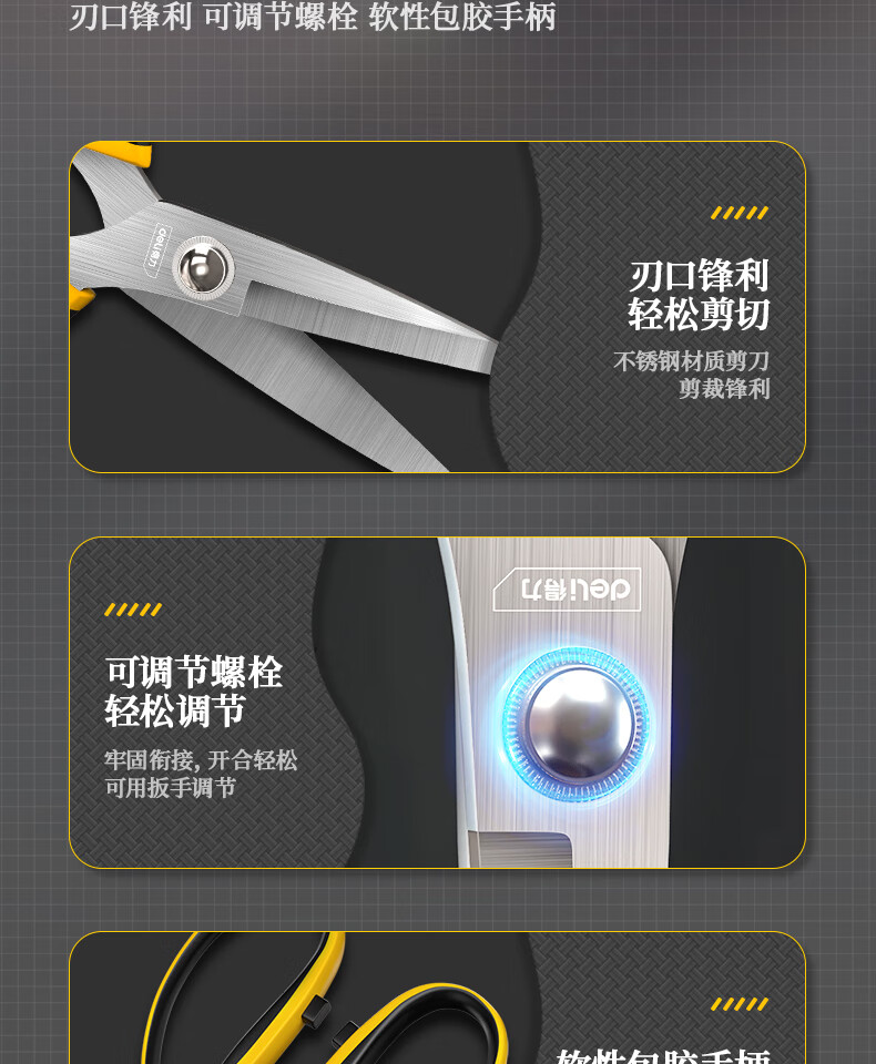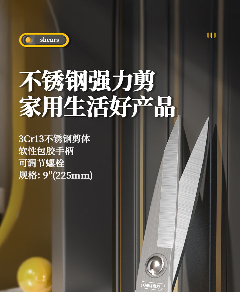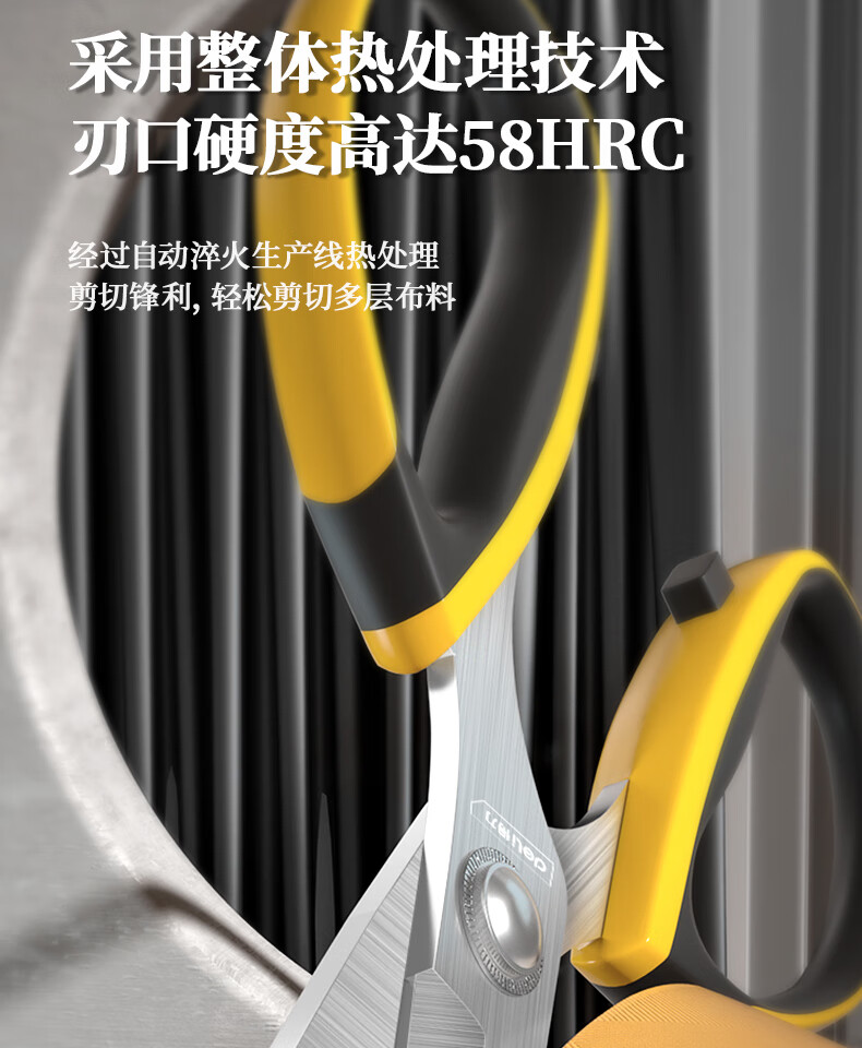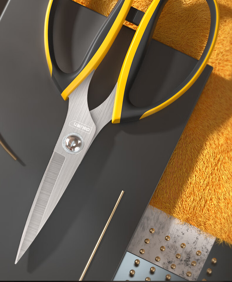 Deli scissors household strong stainless steel scissors unboxing multifunctional handmade paper scissors kitchen cutting seam scissors coated with rubber hardness upgrade large wide handle-DL358009