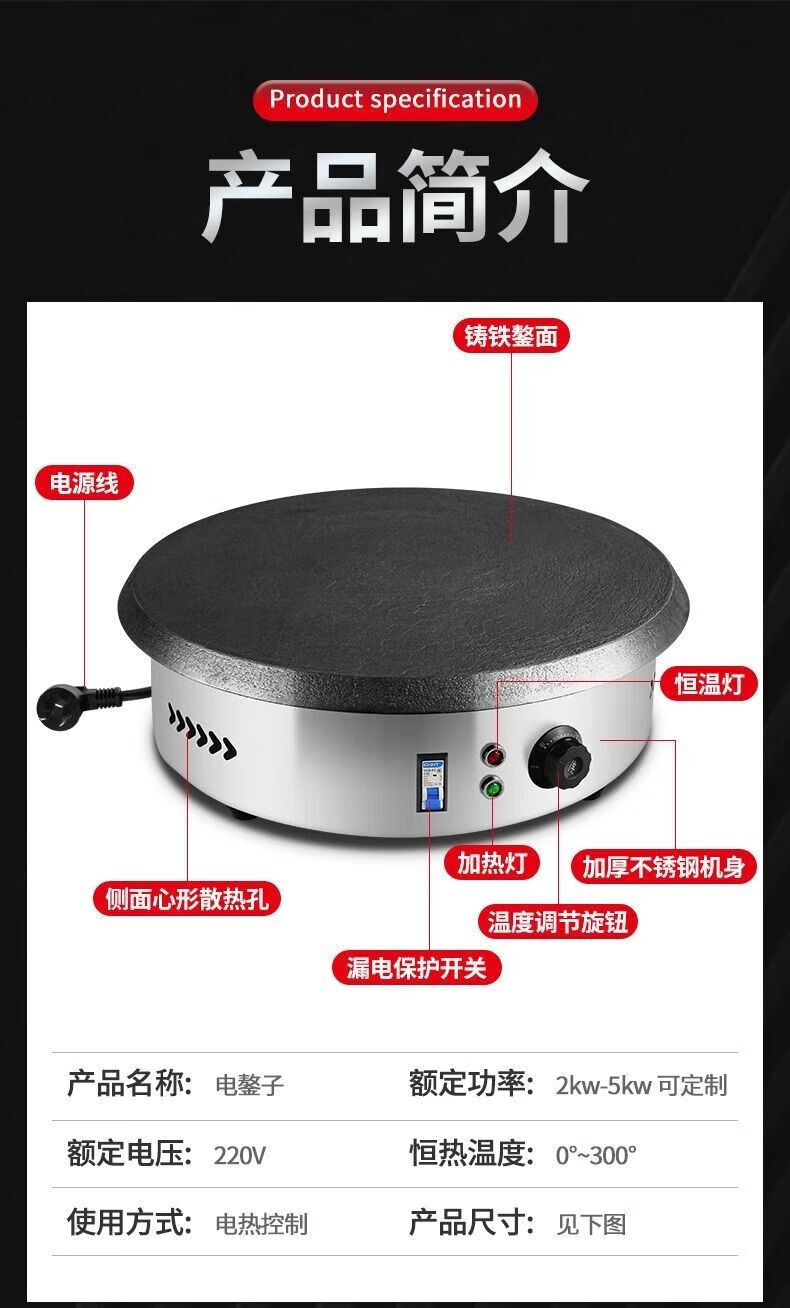 Axis all-in-one machine Shandong pancake machine fully automatic frequency conversion pancake machine electric pancake pan gas 40 household commercial electric spatula 40 cm drum surface cast iron constant temperature model with leakage protection