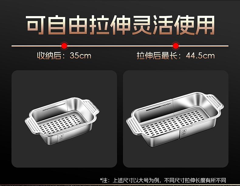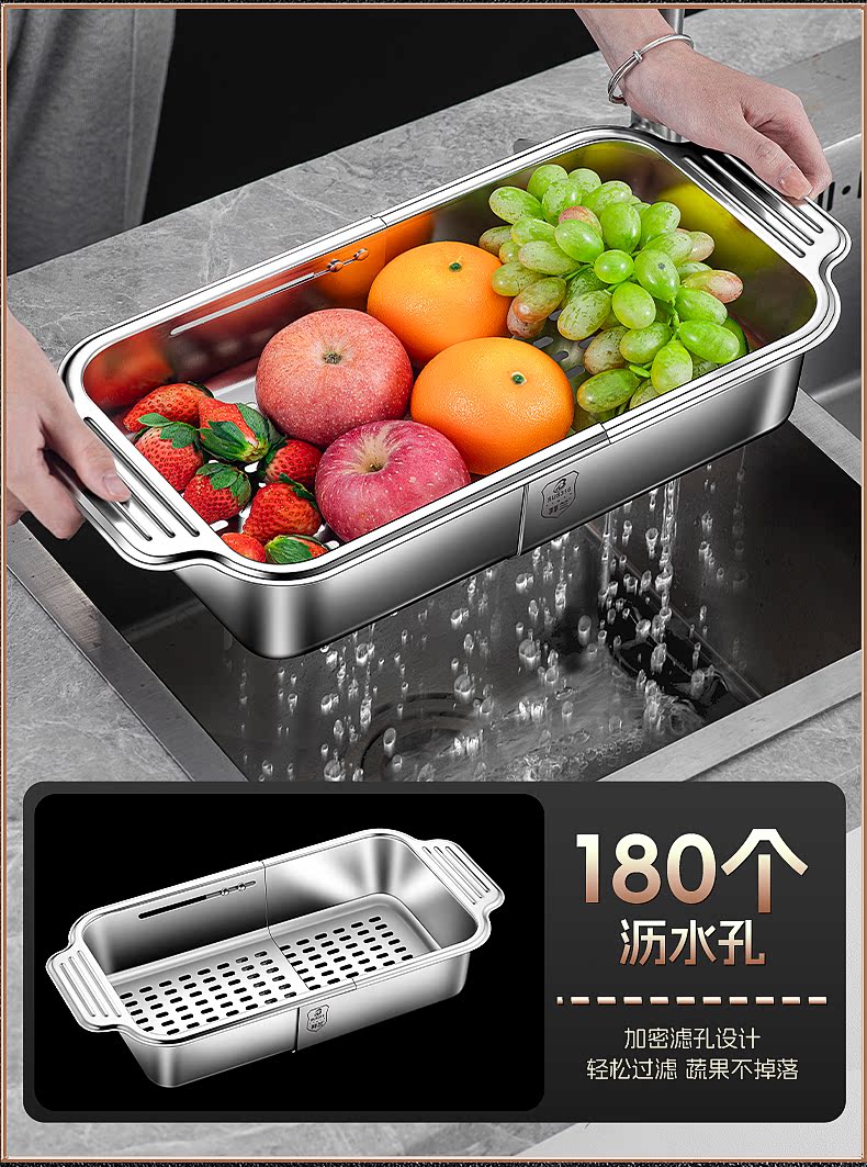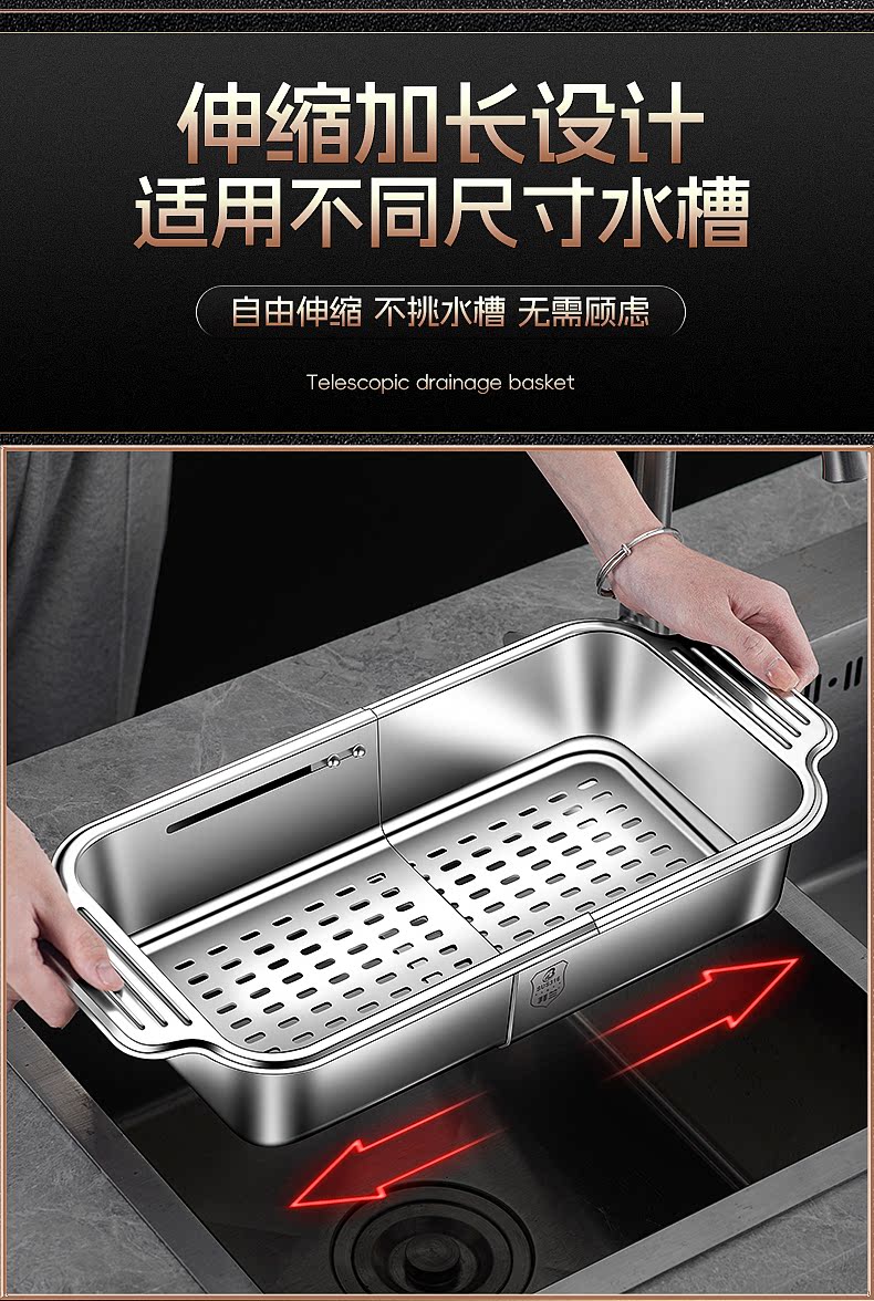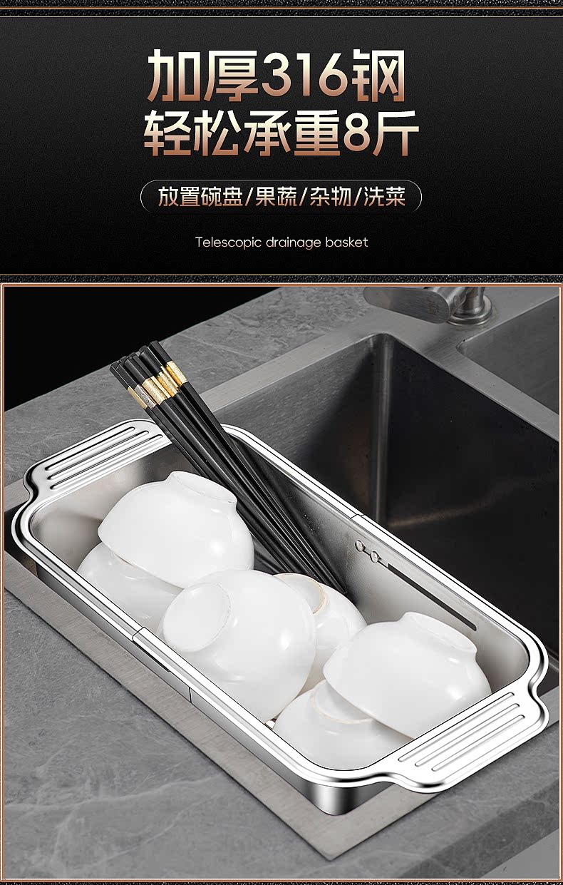 Count Qiabei German imported quality 316 stainless steel drain basket retractable kitchen sink large household sink drain 316 retractable drain basket large
