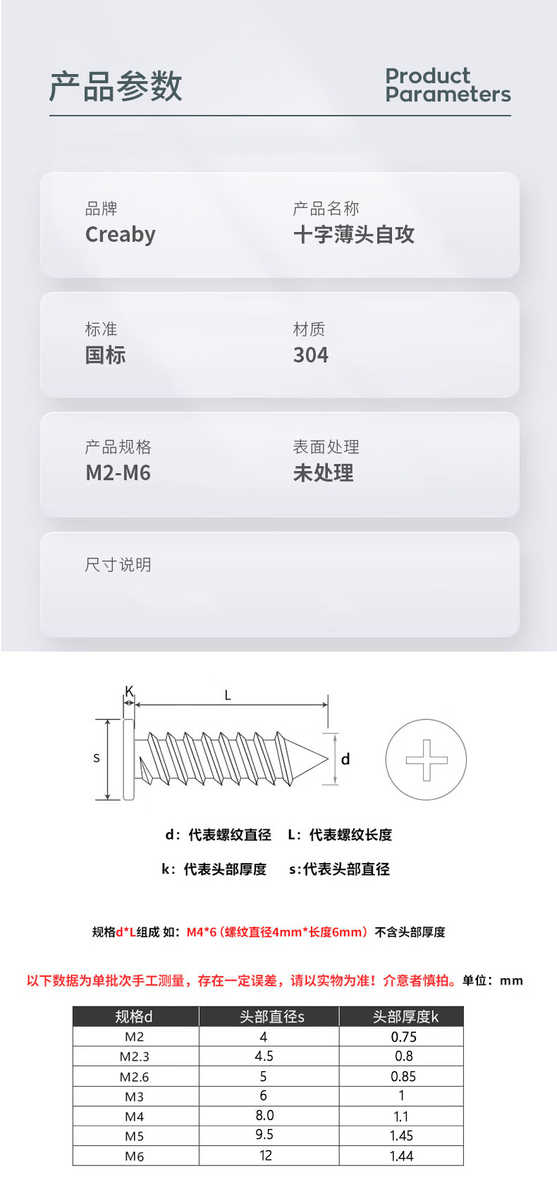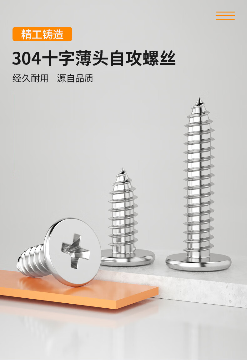 Creaby304 stainless steel flat head self-tapping screws CA ultra-thin head cross large flat head self-tapping screws countersunk head self-tapping screws M4x8 (50 pcs)