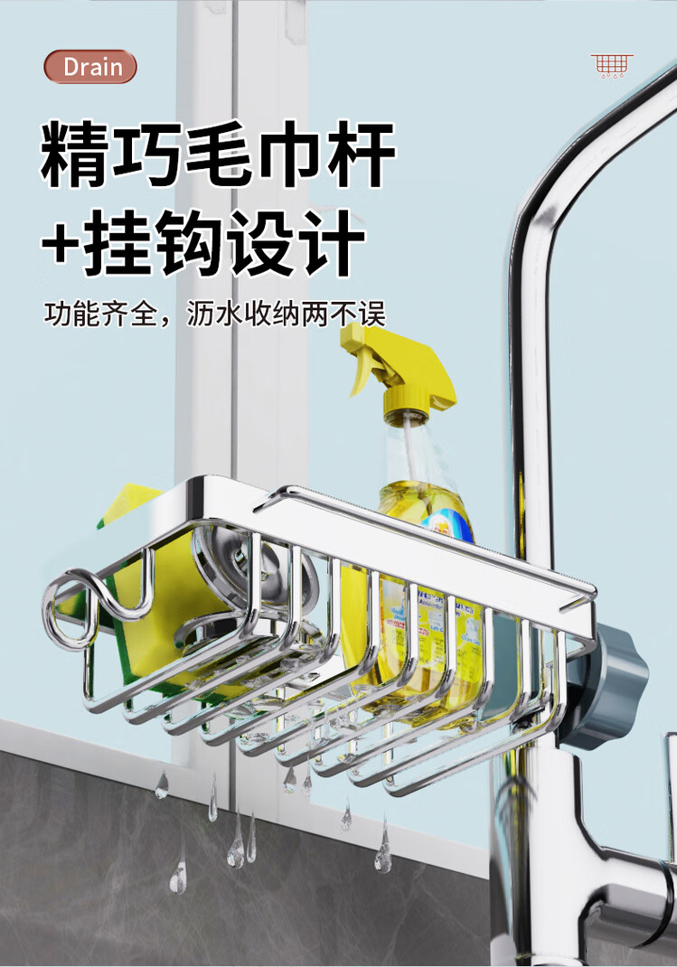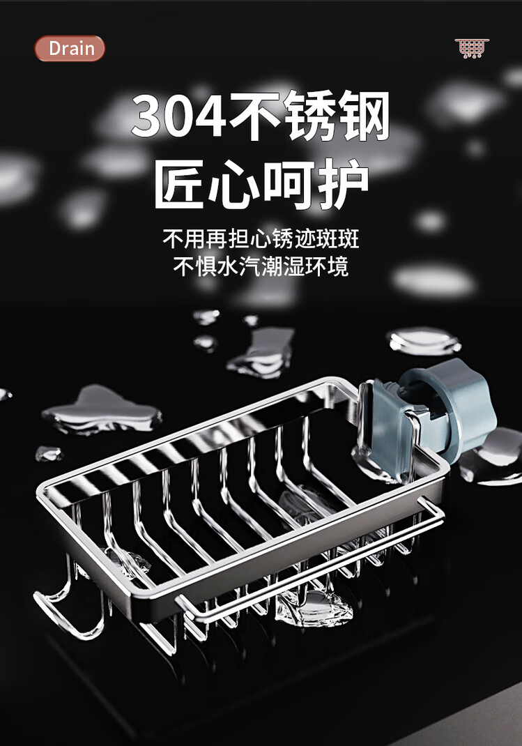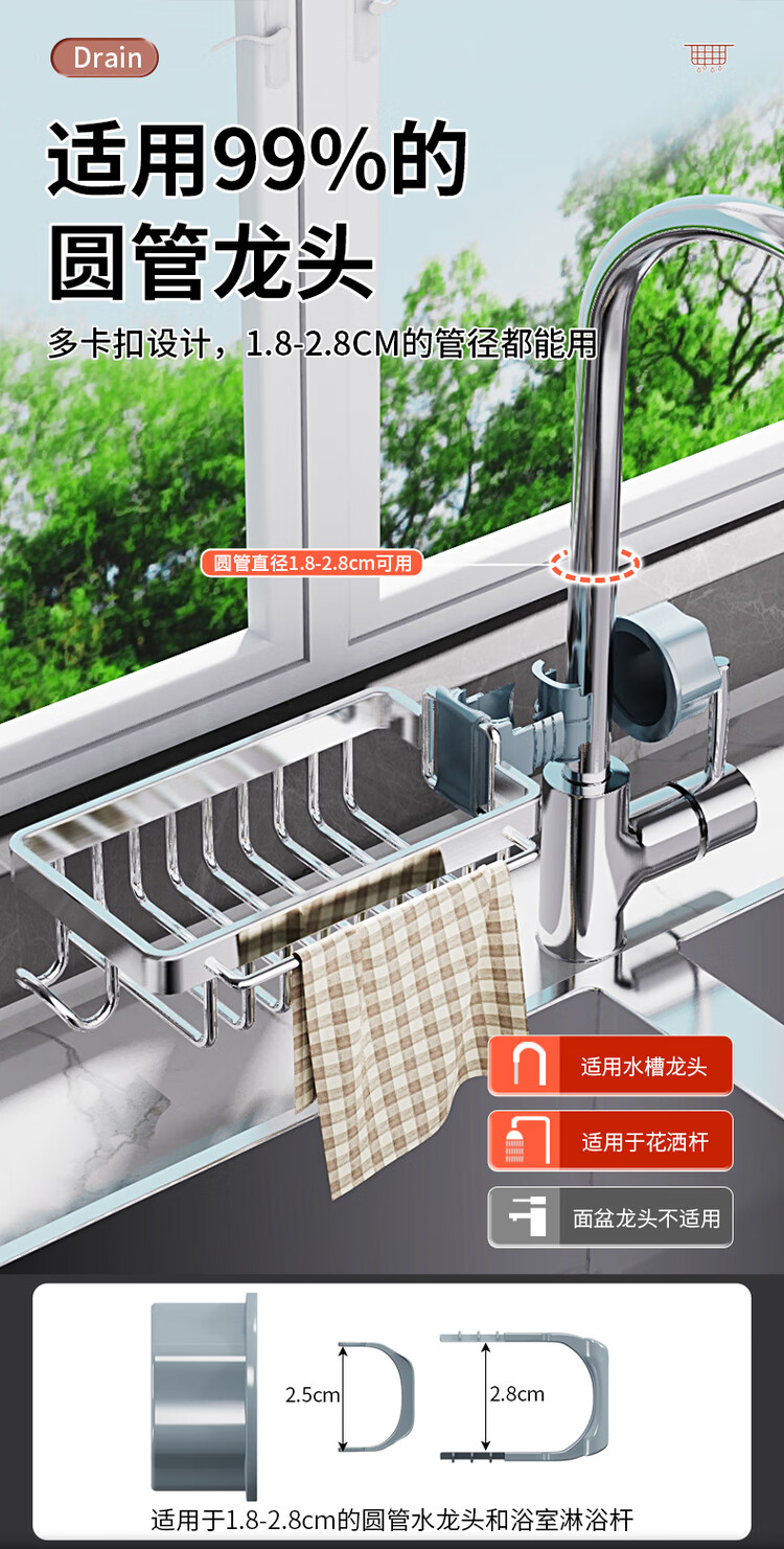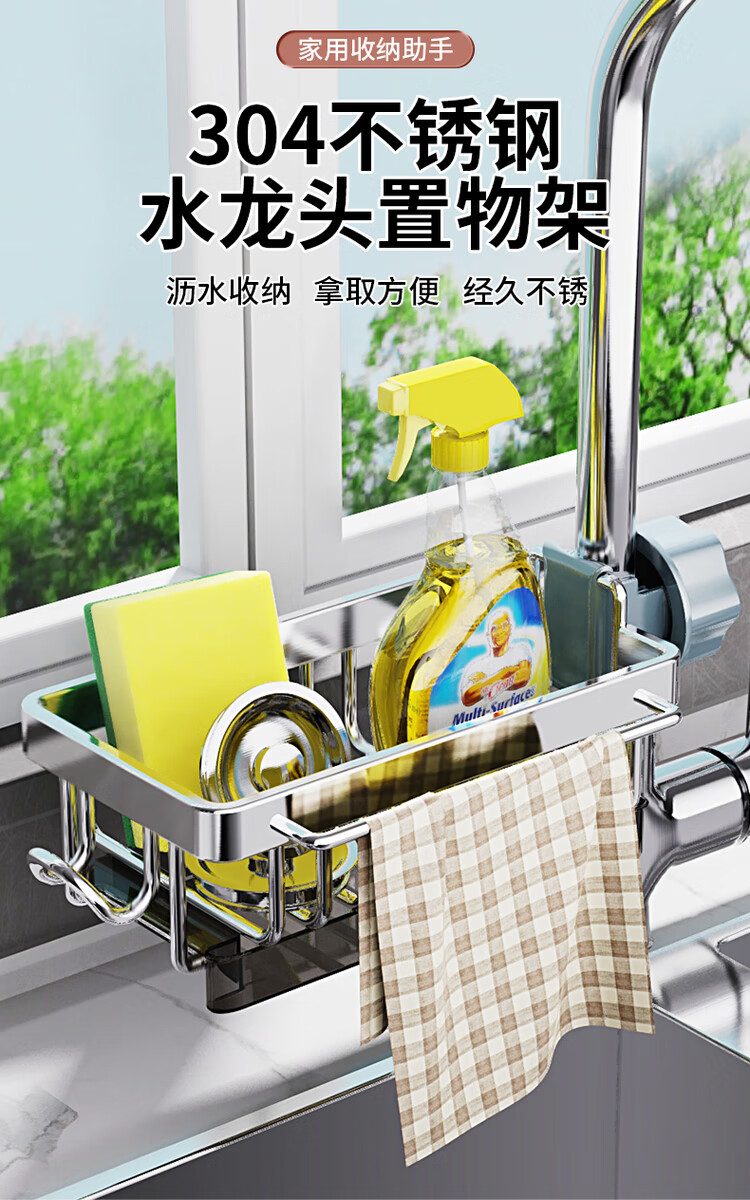 Le Yingfan faucet drain rack 304 stainless steel faucet storage rack kitchen supplies sink sink storage dishwashing sea stainless steel double-layer storage + hook + rag rod.