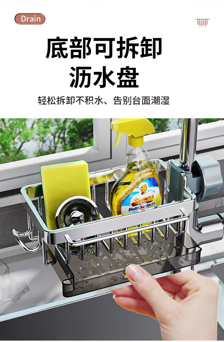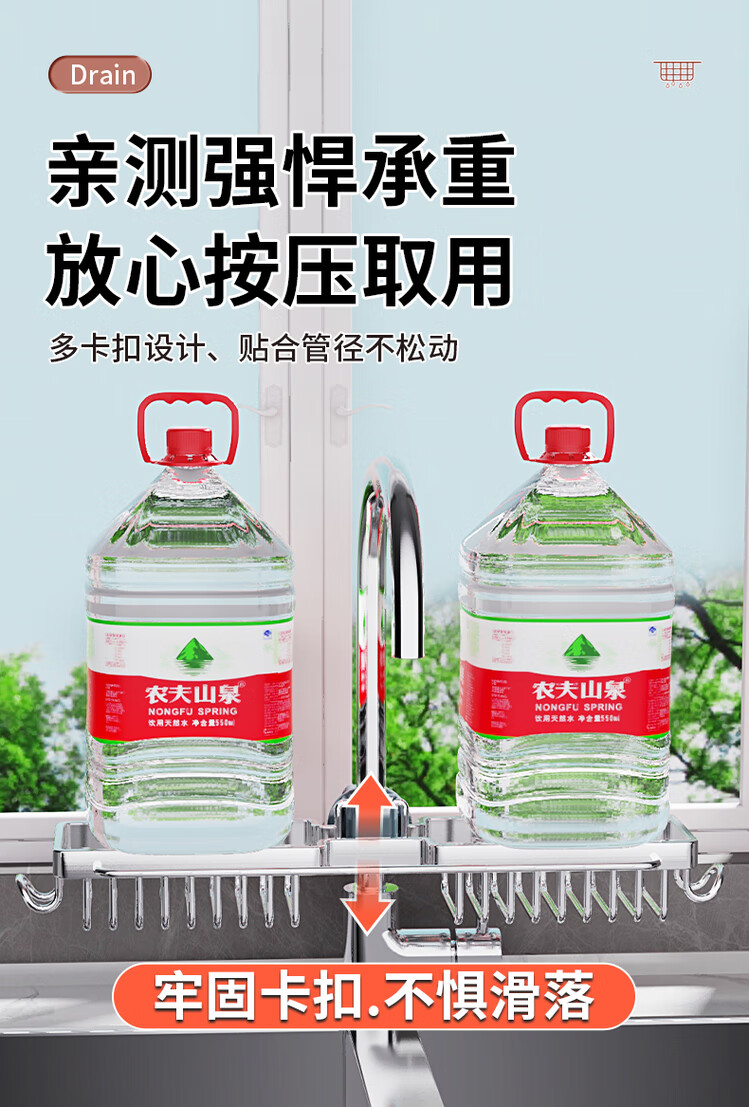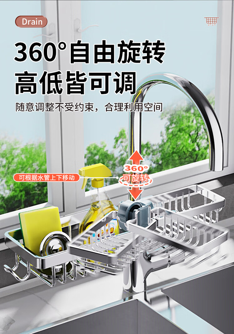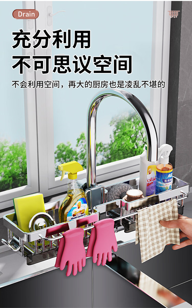 Le Yingfan faucet drain rack 304 stainless steel faucet storage rack kitchen supplies sink sink storage dishwashing sea stainless steel double-layer storage + hook + rag rod.