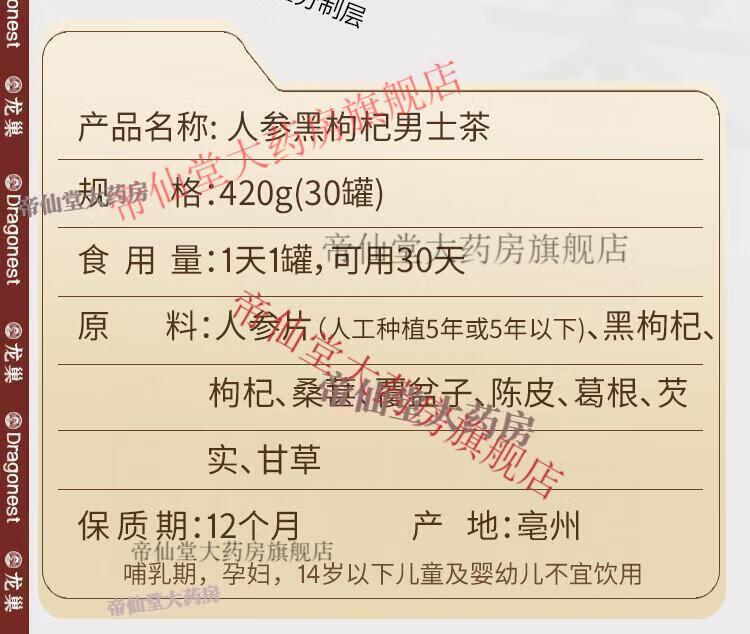 Men's Health Tea Ginseng Black Wolfberry Men's Tea Men's Kidney Replenishing Essence Restoration Five Treasure Tea Babao Tea High-end Small Can Health Tea (Kidney Replenishment) One box of men's tea + Desert Hutch + 3 boxes of wolfberry puree