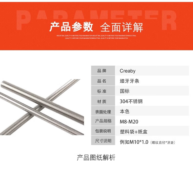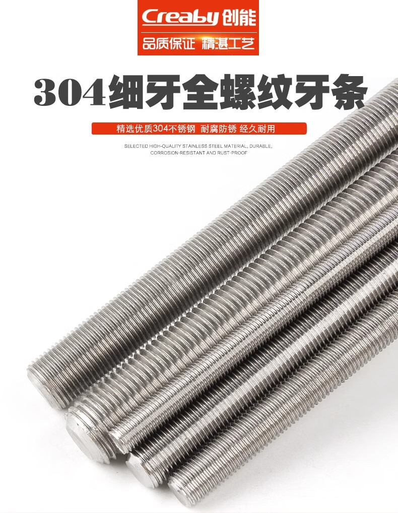 Creaby304 stainless steel thread rod screw full thread fine thread screw M10*1.5 (standard thread - 1 meter)