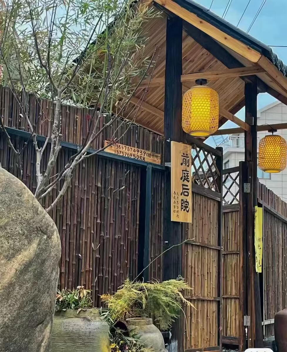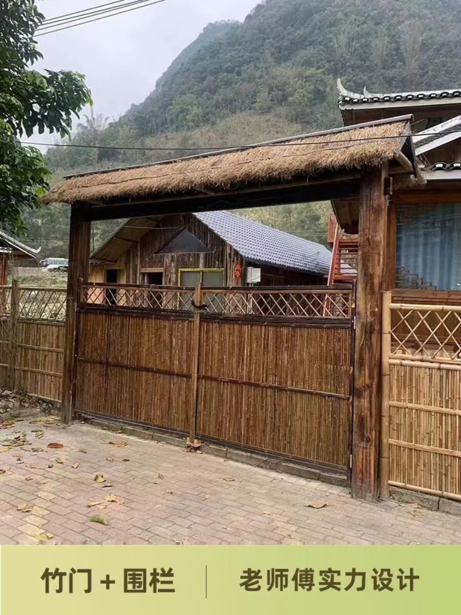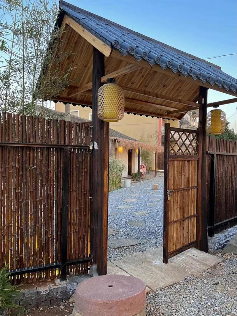 Chuangjing Yizhong B&B small courtyard wooden door anti-corrosion wooden door head bamboo door B&B door head courtyard door Chinese style antique rural farm scene area resin tile roof
