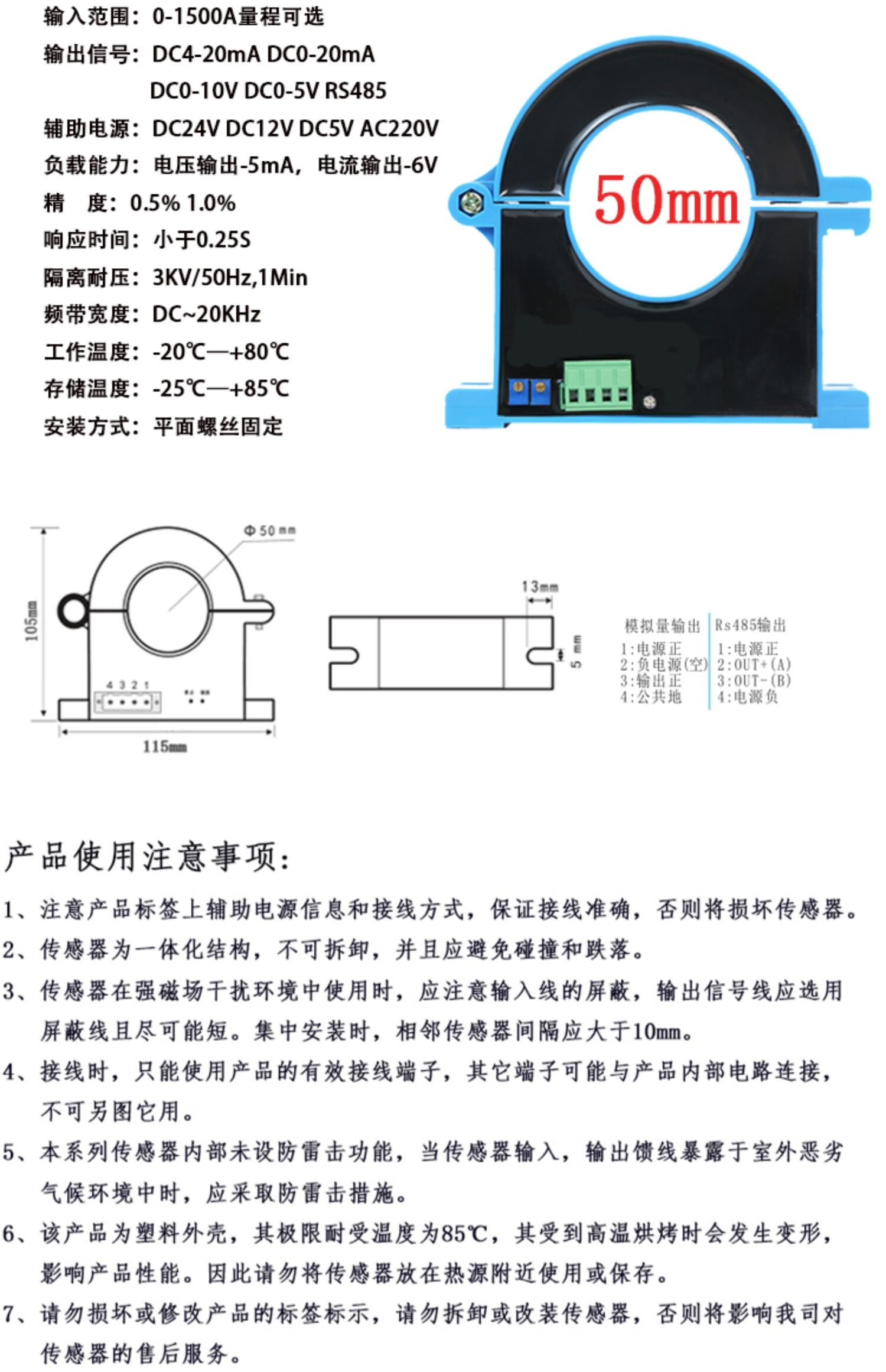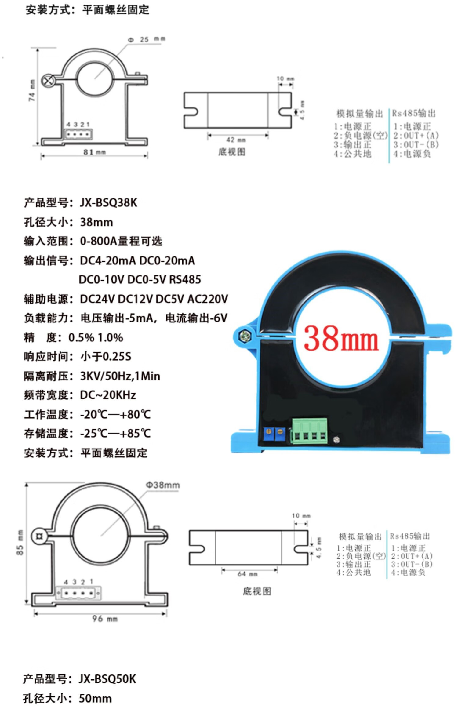 Opening and closing current transmitter Hall AC and DC integrated current transformer output DC4-20mA 0-5V AC0-5A (4-20mA) Other output inner holes consultation