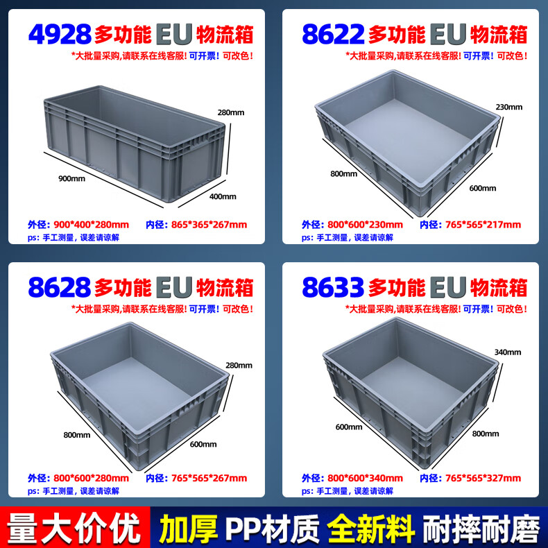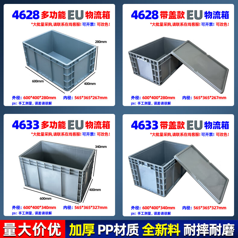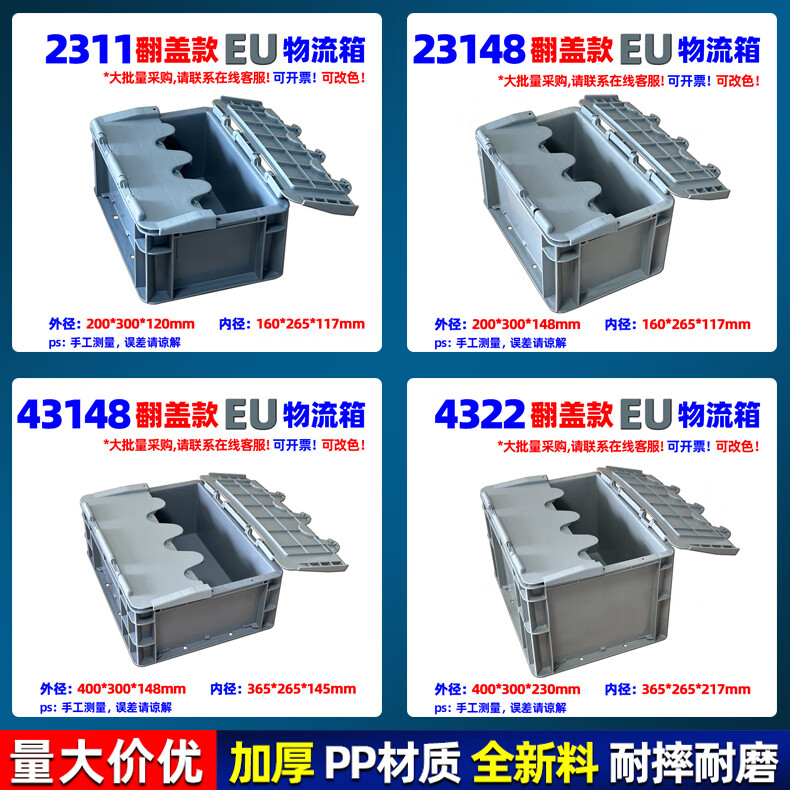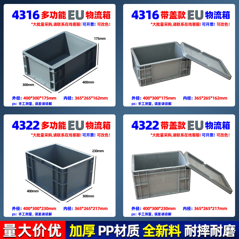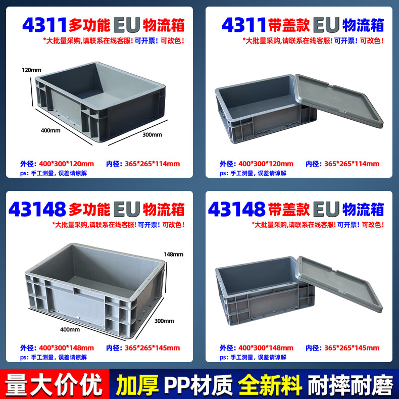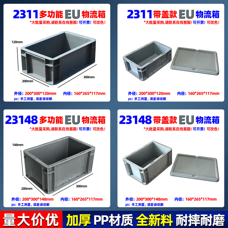 Xinhou plastic logistics turnover box turtle plastic box with lid turnover basket large rectangular plastic storage box transport EU box 200*300*120mm gray without lid 2311