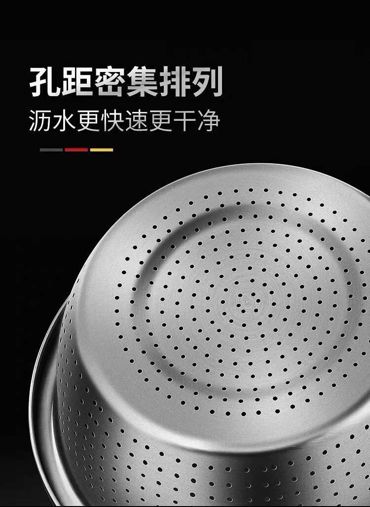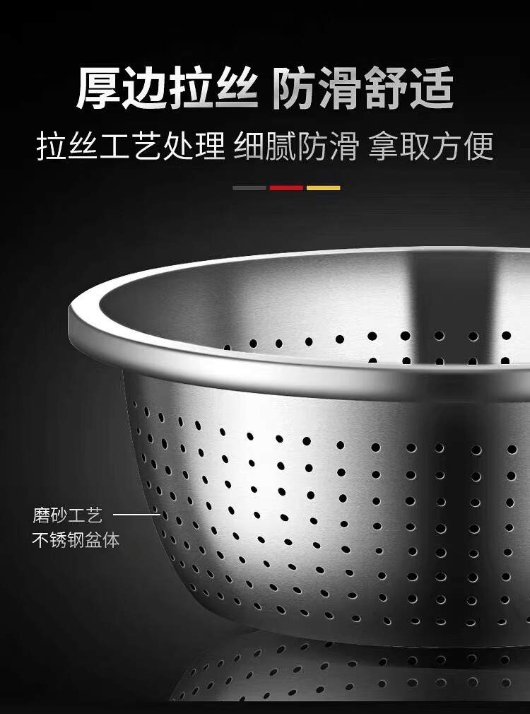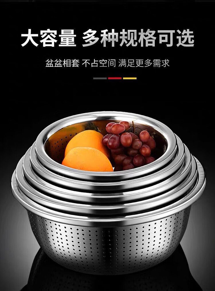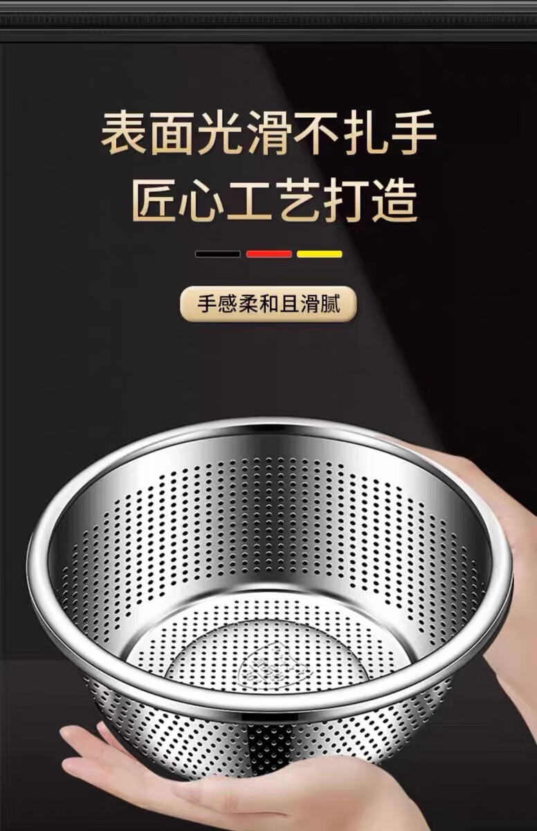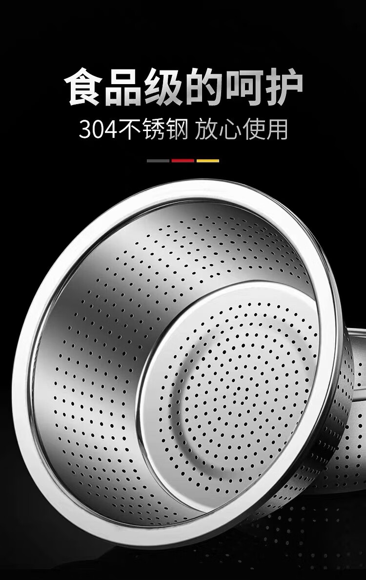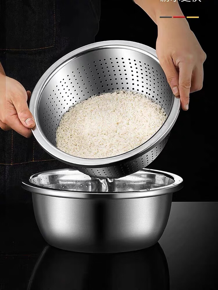 Leishton 304 stainless steel drain basket, vegetable basin, rice washing sieve, kitchen drain basket, household fruit basket, drain basin, rice washing basin, pure extra thick - 24cm drain basin