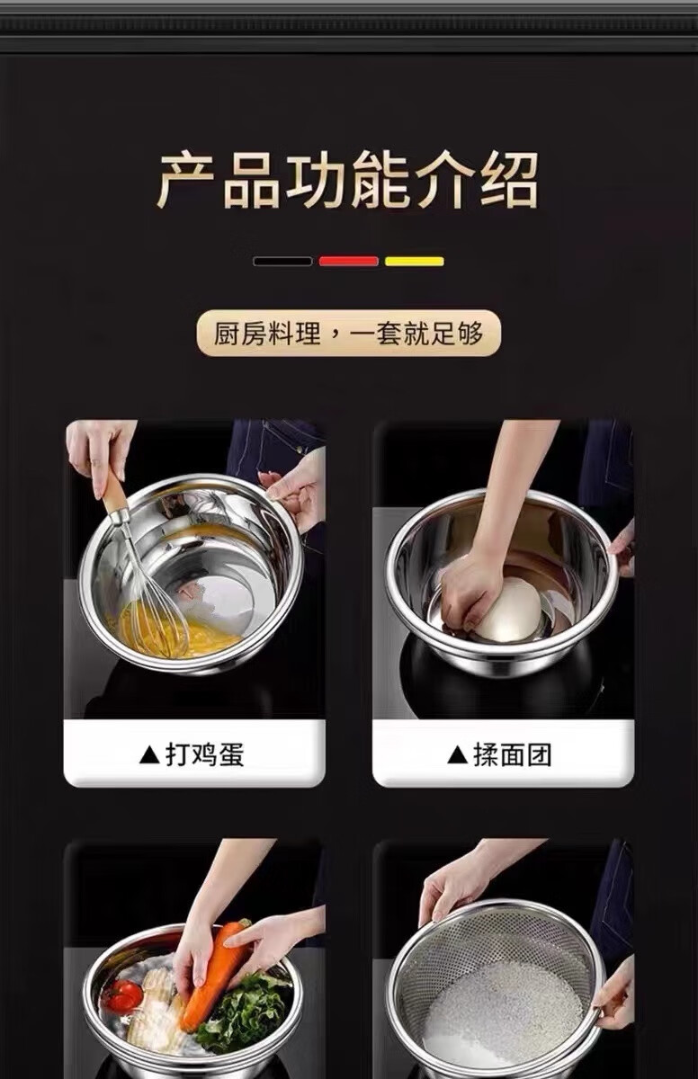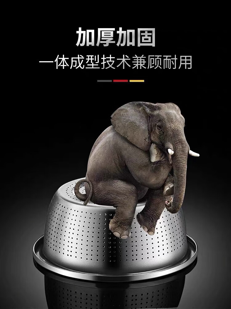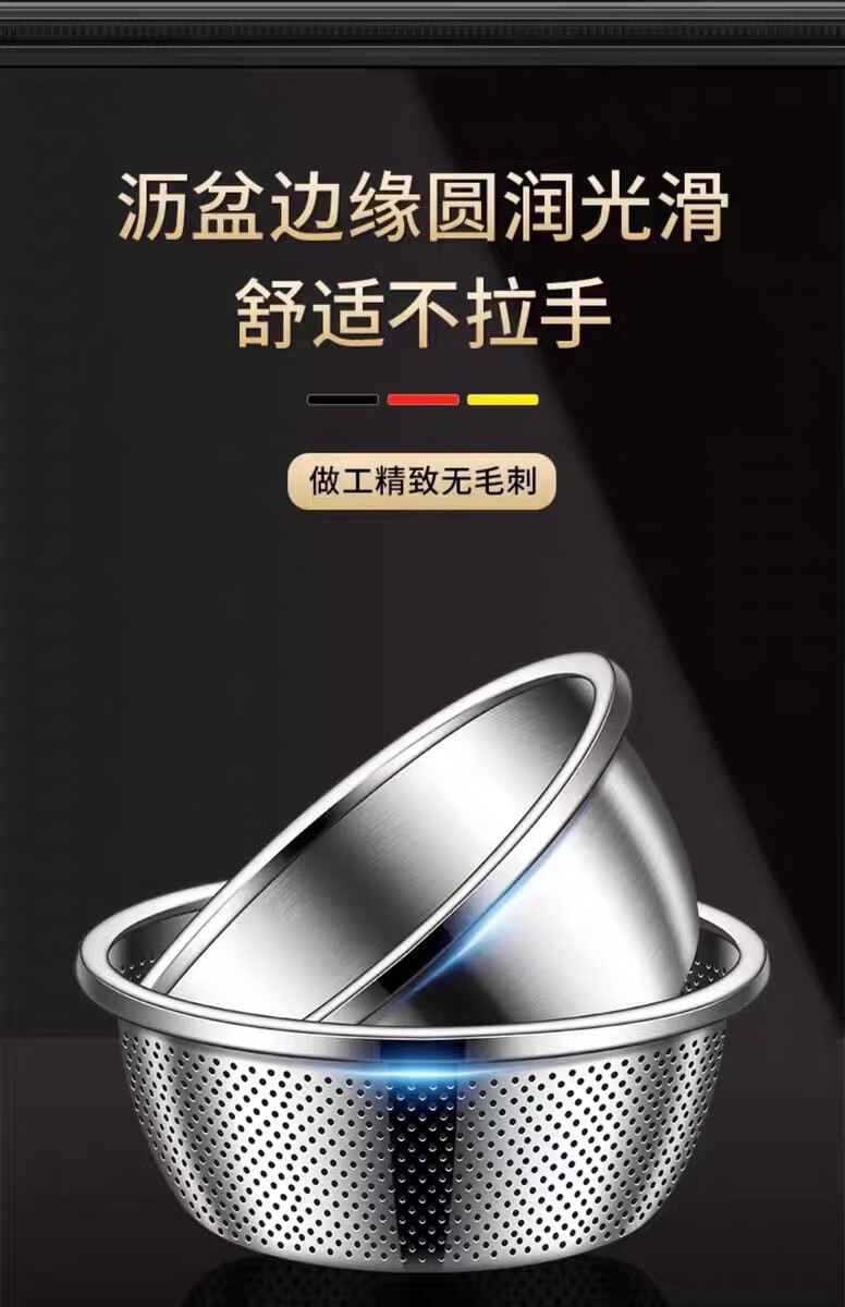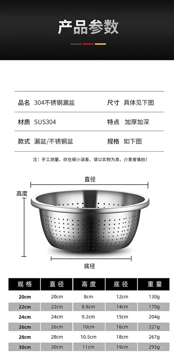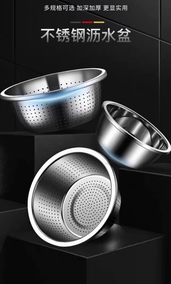 Leishton 304 stainless steel drain basket, vegetable basin, rice washing sieve, kitchen drain basket, household fruit basket, drain basin, rice washing basin, pure extra thick - 24cm drain basin