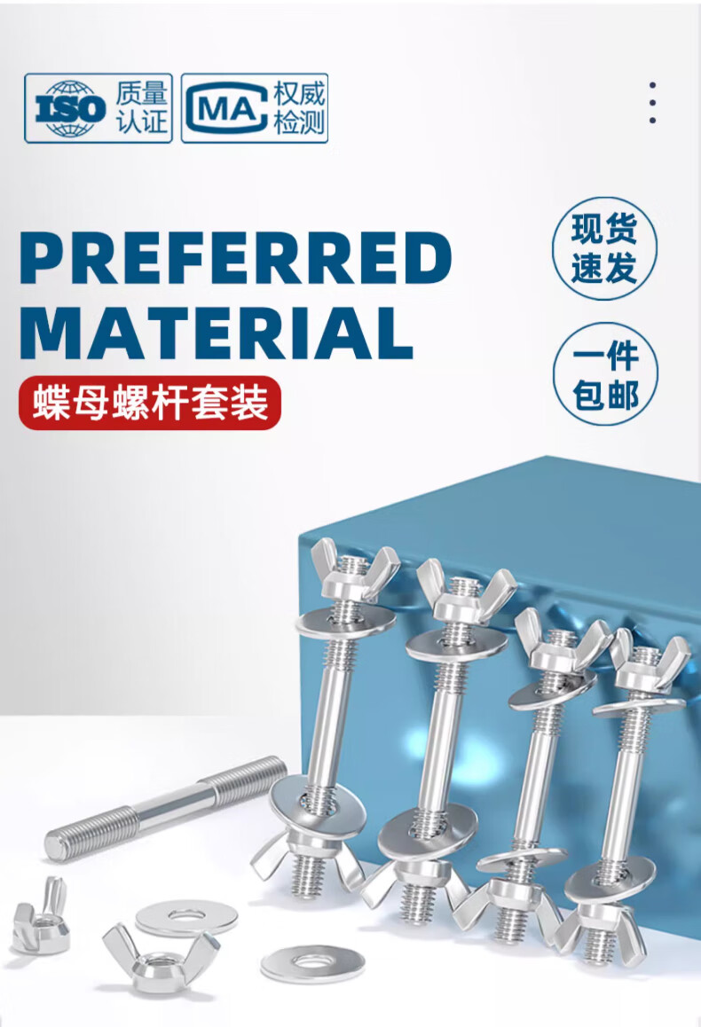 Tianzhuo Hardware 304 stainless steel wall screws extended double-headed bolts hand-tightened nuts through screw rod nut combination set M8*120 2 sets