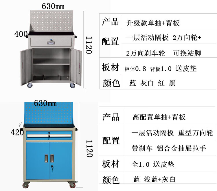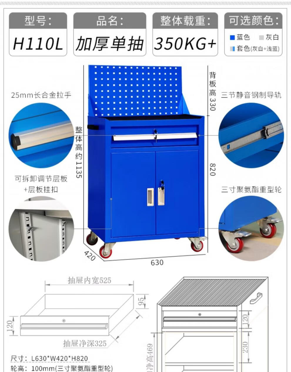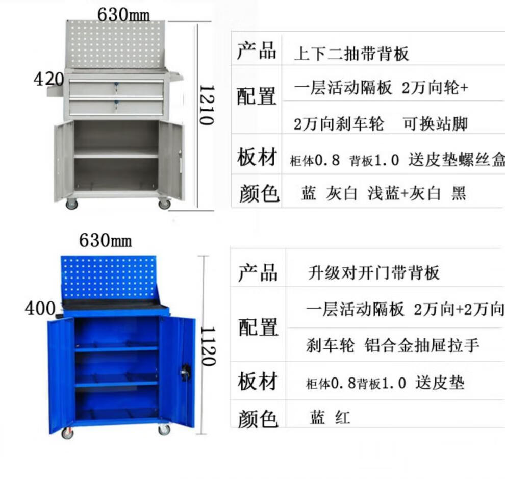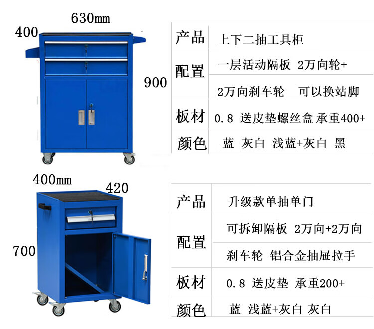 Heavy-duty tool cabinet drawer-type tool cart auto repair cart repair multi-functional storage box factory workshop workbench TH111L extra thick upper and lower two drawers 1.2 blue + wheel brake