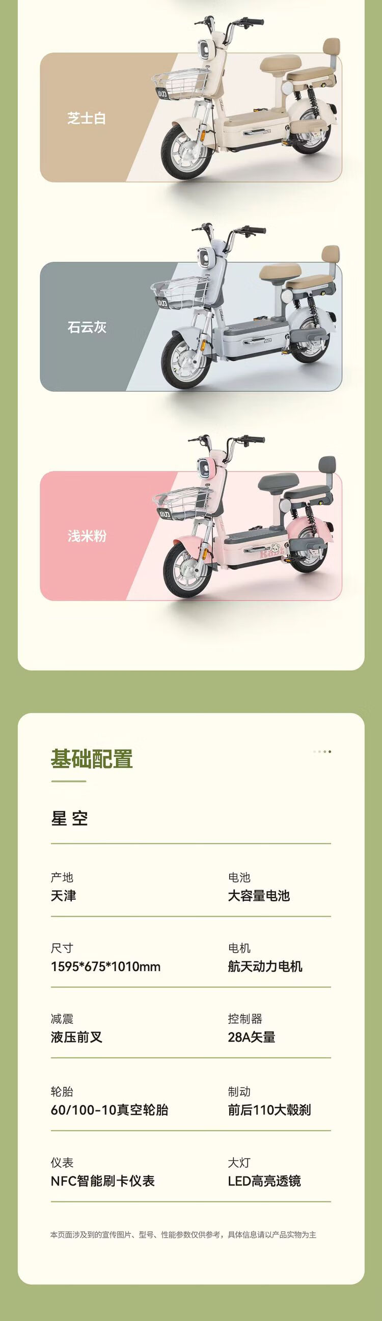 Xiaodao Electric Bike Starry Sky New New National Standard Men's and Women's Electric Bike Battery Car Graphene Long Range Cheese White 48V12AH