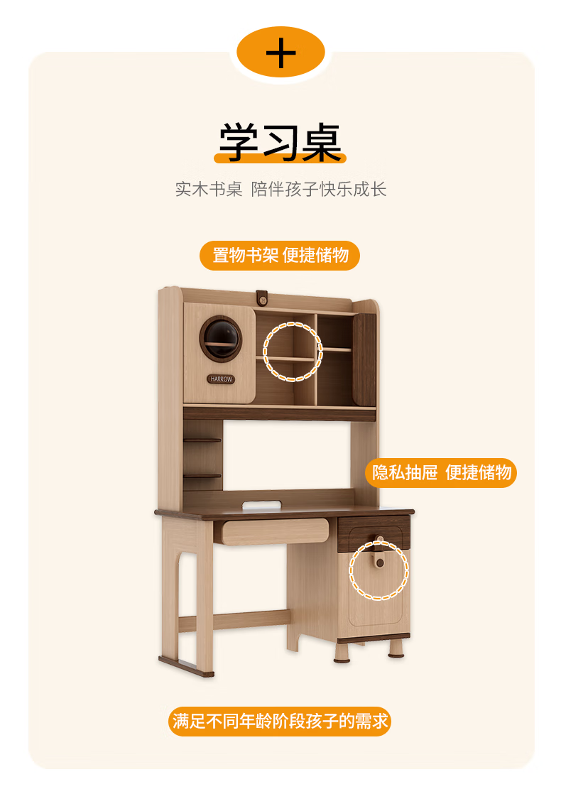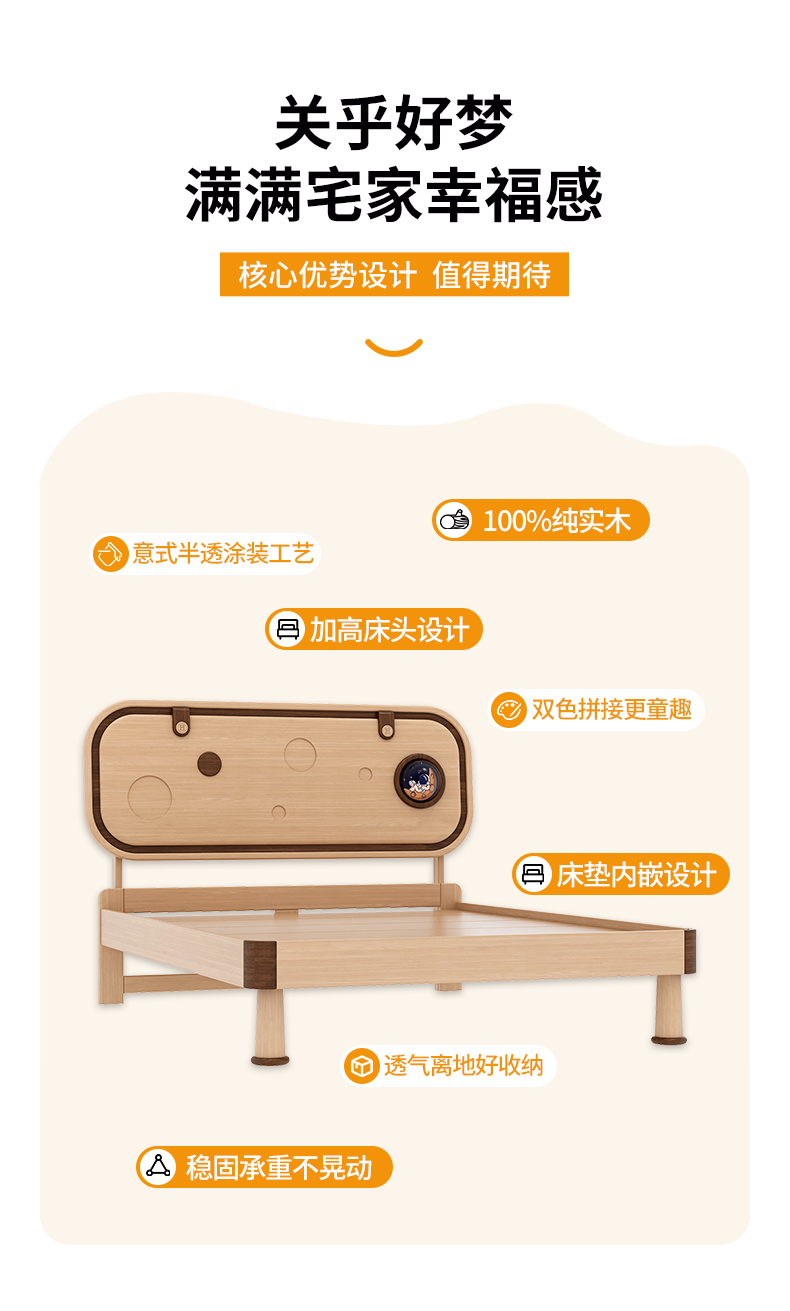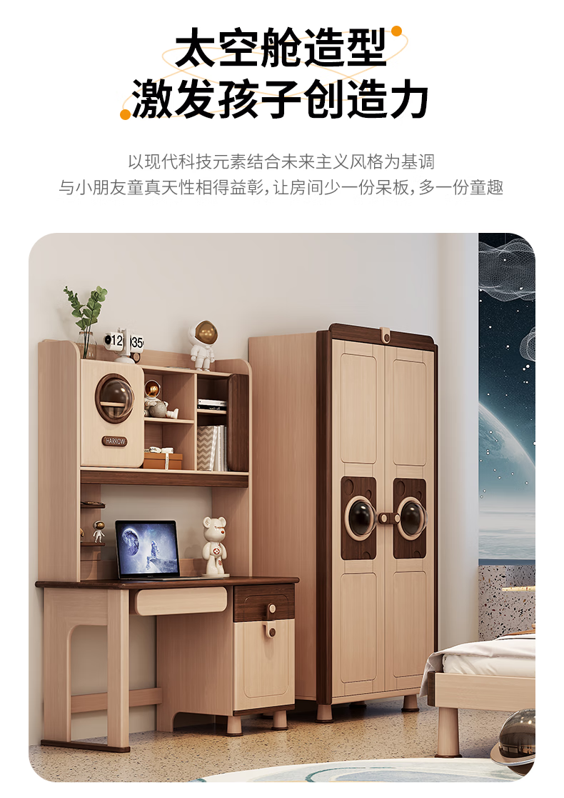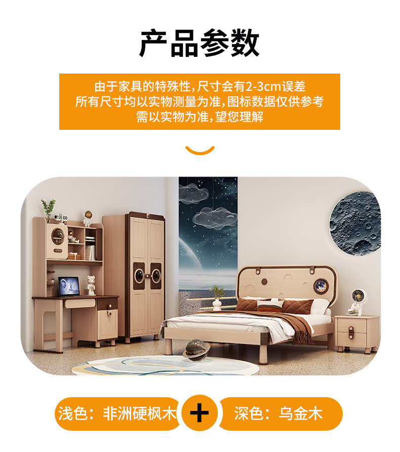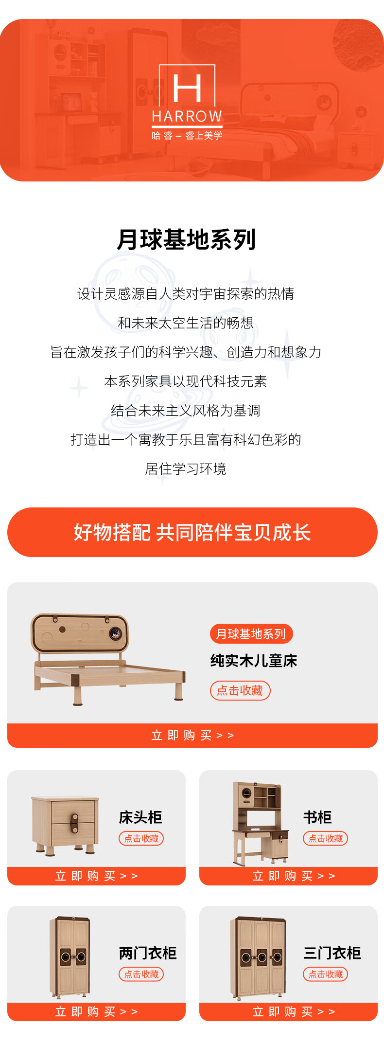 HRKIDS Harui Youth Solid Wood Home Ruishang Series Moon Base Suite Single Bed