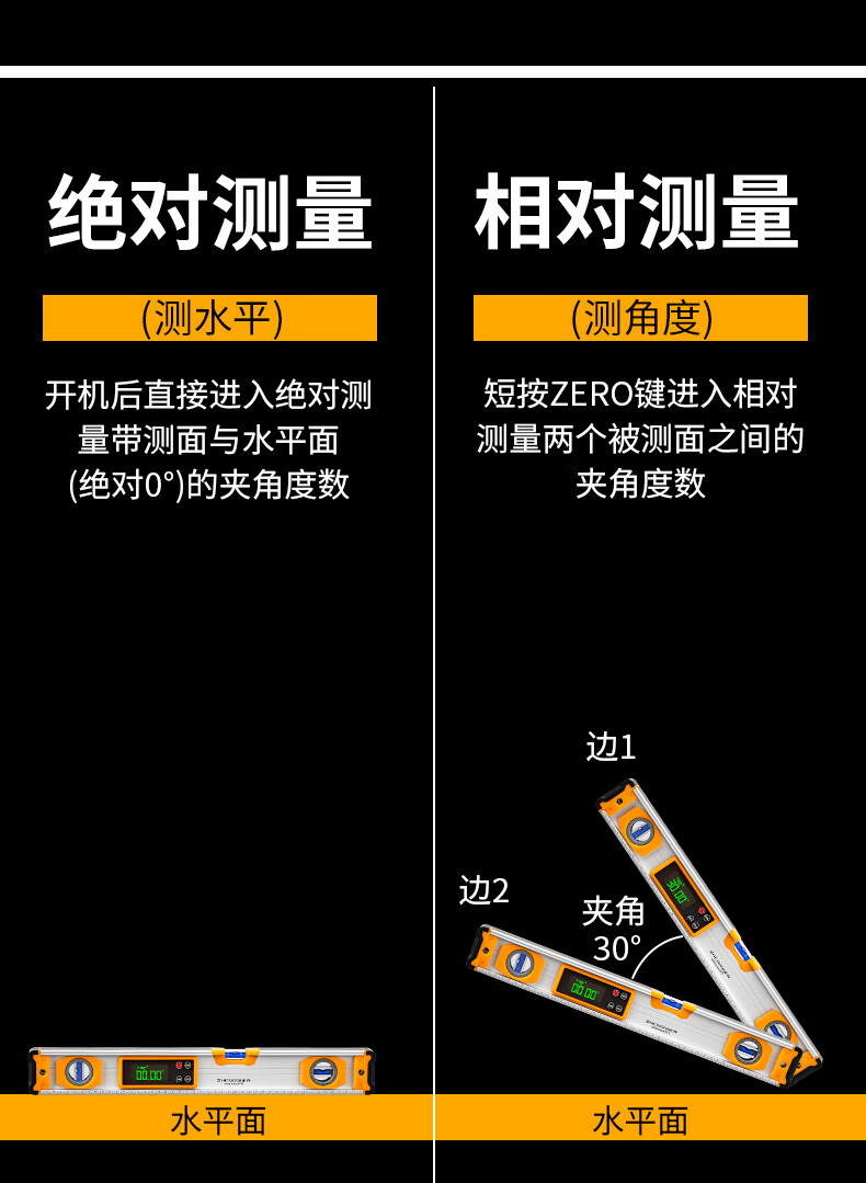 Zhengqi digital display level high-precision electronic level digital level ruler multi-functional angle ruler small mini high-precision strong magnetic digital display level-30cm