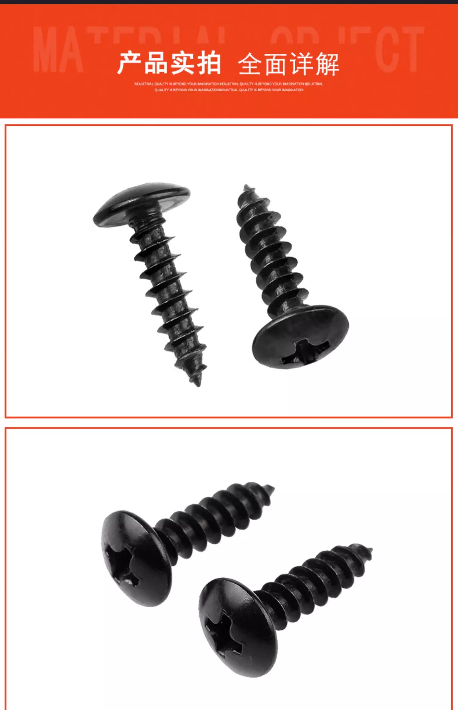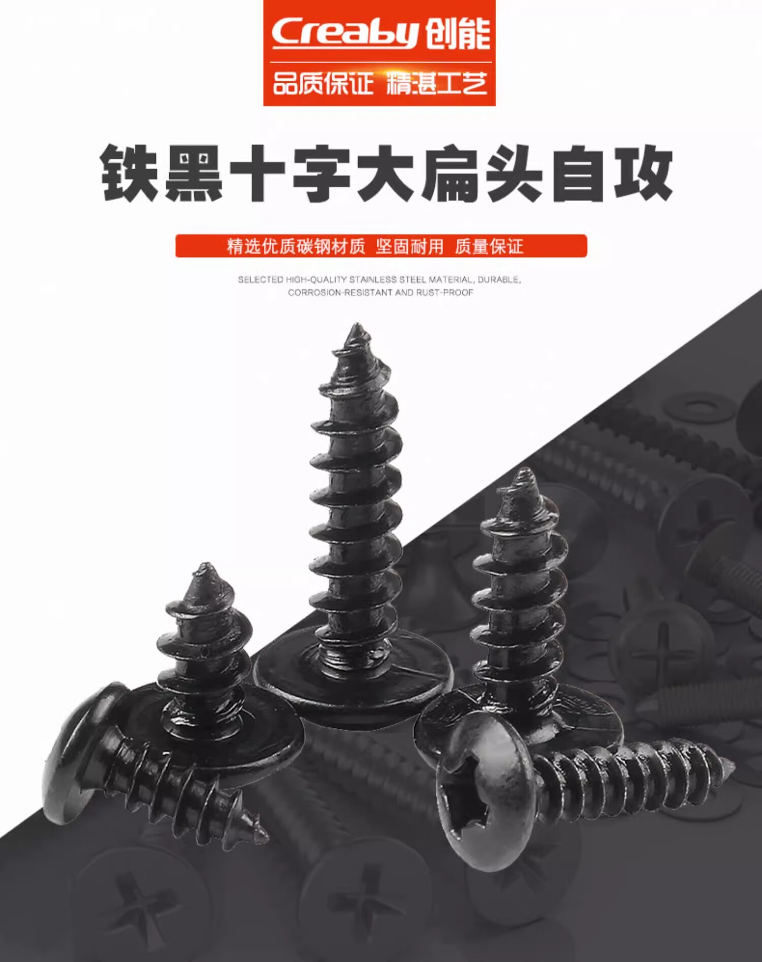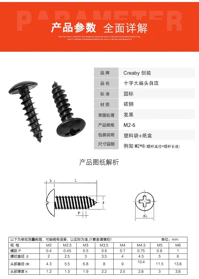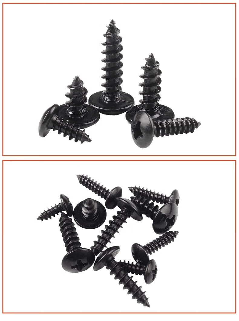 Creaby iron black cross large flat head self-tapping screws mushroom round head pointed tail wood screws umbrella head self-tapping screws M3.5*8 (200 pieces) iron black material