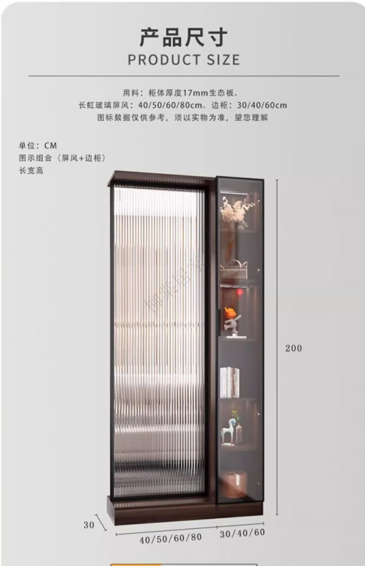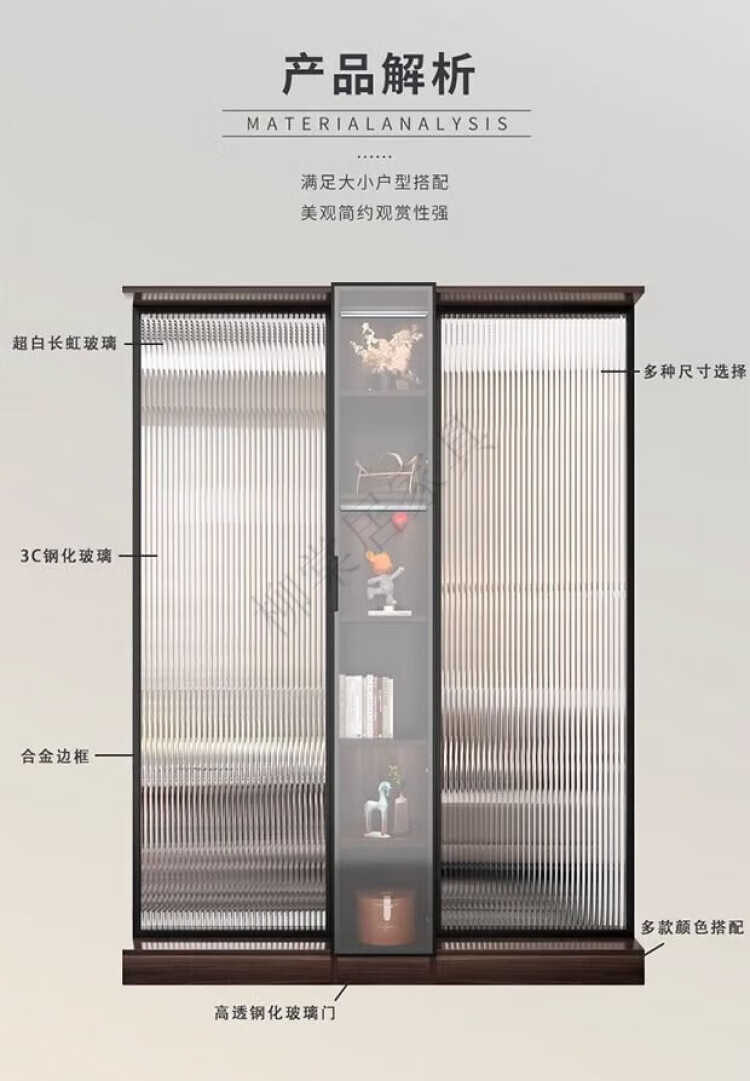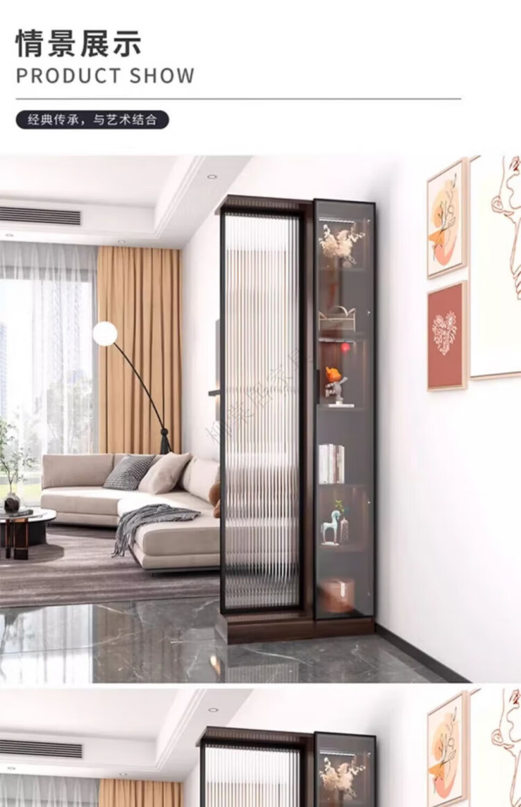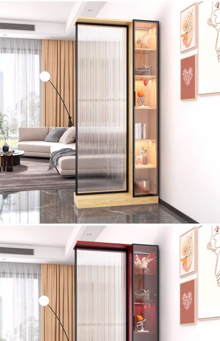 Liutangju Changhong glass screen partition cabinet entry entrance cabinet living room simple modern foyer cabinet storage storage cabinet alloy frame Changhong screen cabinet 200*150cm