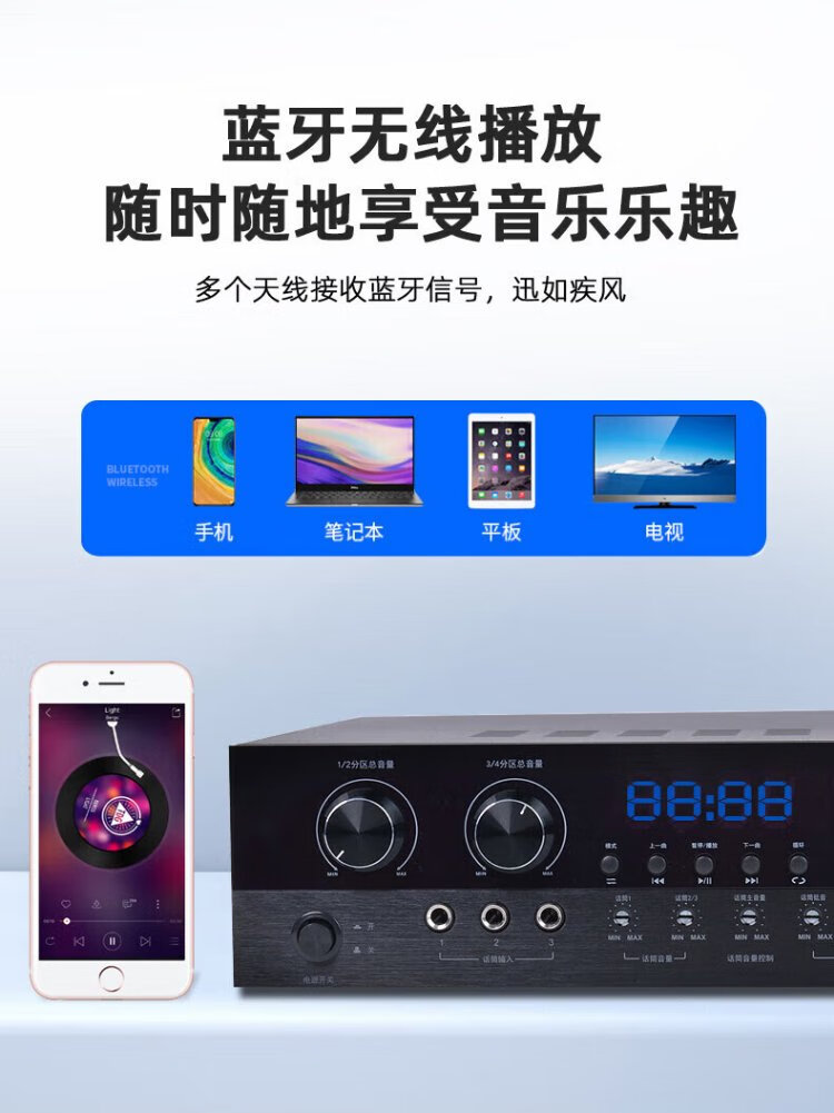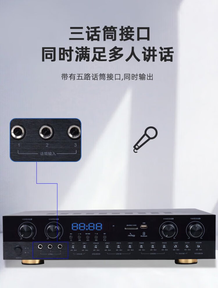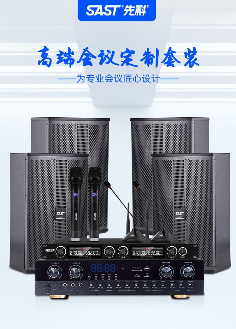 Xianke conference room audio equipment complete set combination home theater KTV music school training special system Bluetooth amplifier microphone all-in-one wall-mounted stage speaker K5V four 12-inch audio set four microphones four goosenecks (220-450 square meters