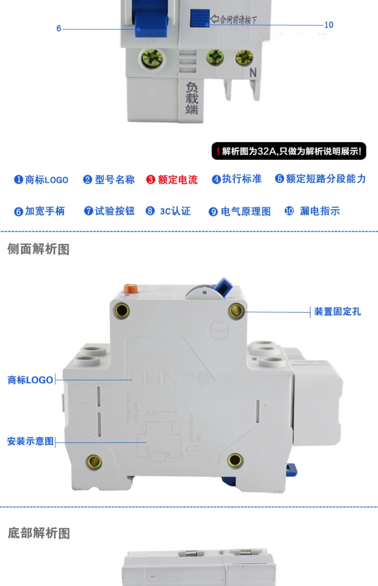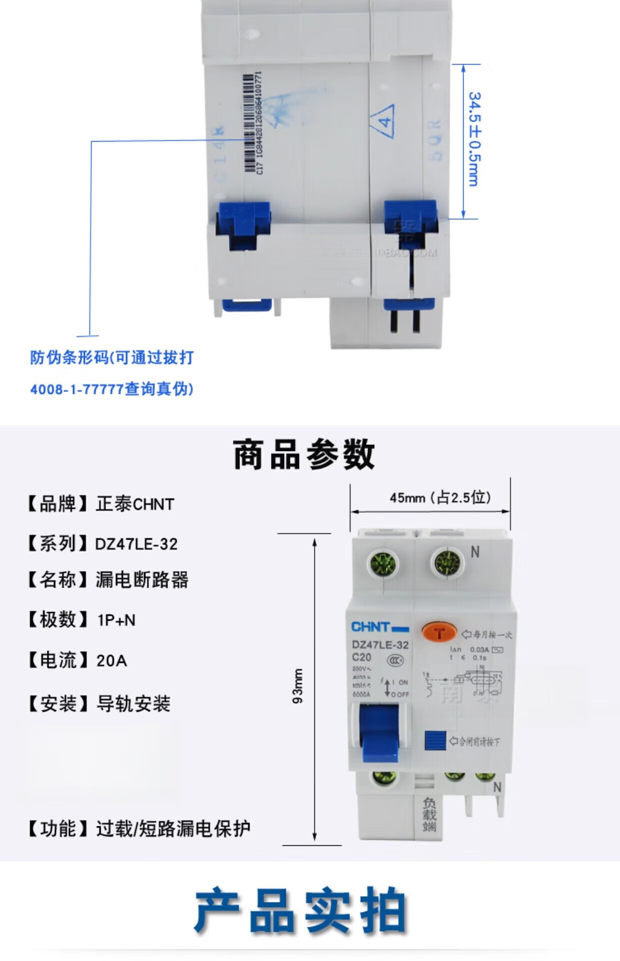 DZ47LE-32 C20 leakage protection circuit breaker electric shock 20A 1P+N