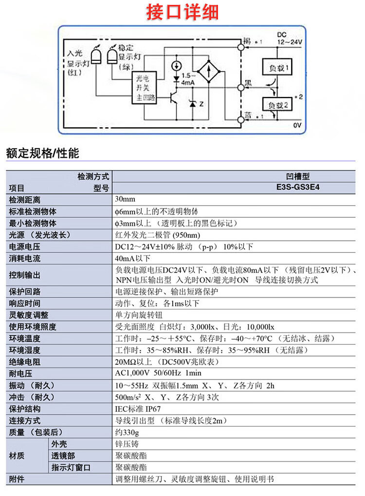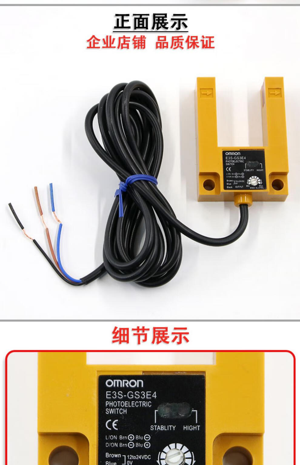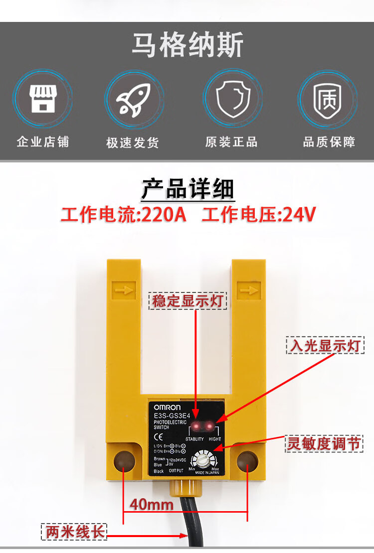 Suitable for Omron photoelectric switch E3S-GS3E4 elevator leveling sensor 3-wire elevator accessories slot U-shaped E3S-GS3E4 (three-wire plastic shell)