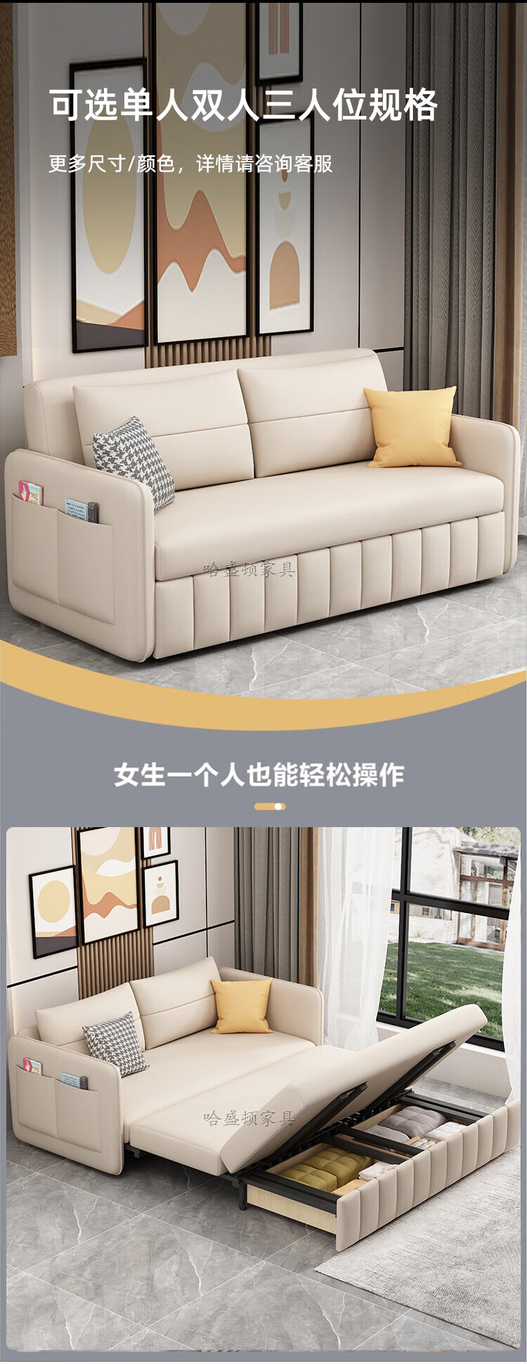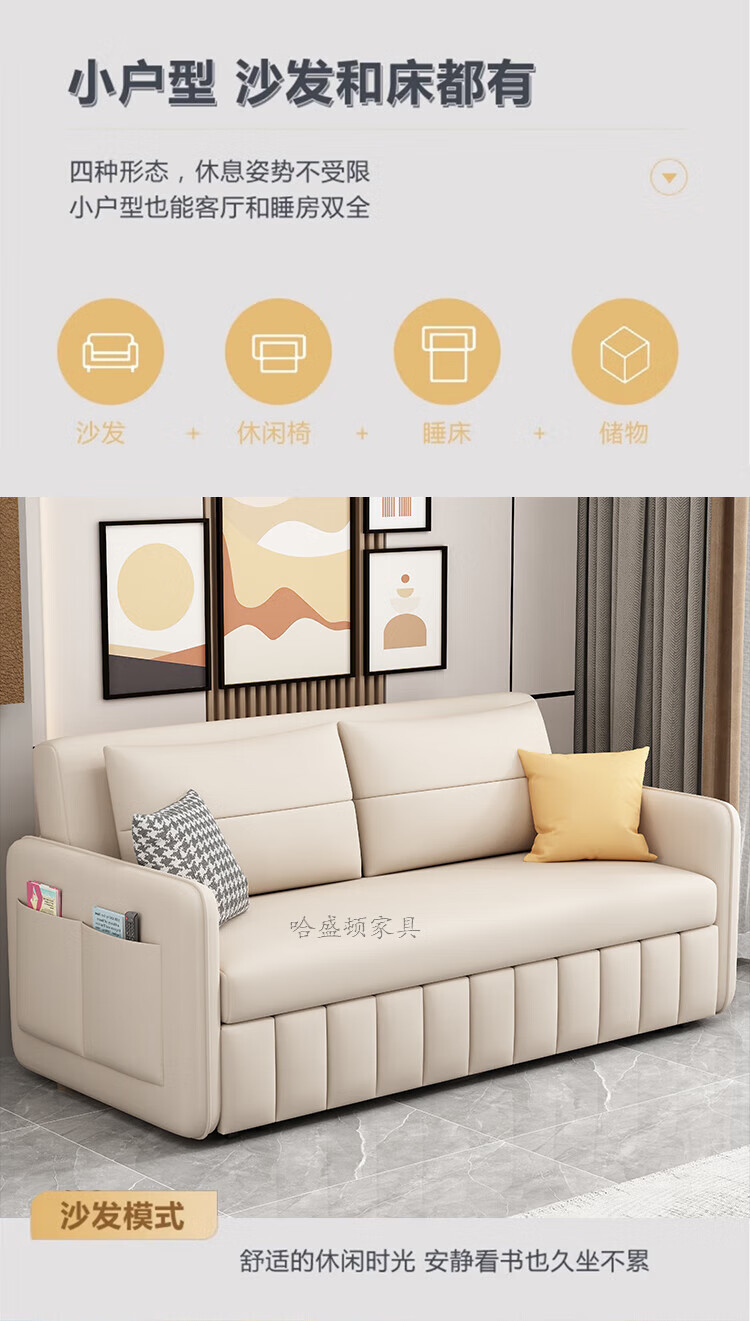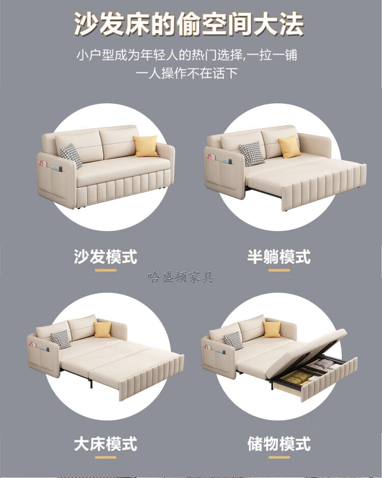 Washington Sofa Cat Scratch Cloth Folding Dual-Purpose Multi-Function All-in-one Push-pull 1.5m 2m Balcony Internet Celebrity Style Living Room Sofa Bed 1.2m 2CM Latex + 7CM Sponge Model No Storage