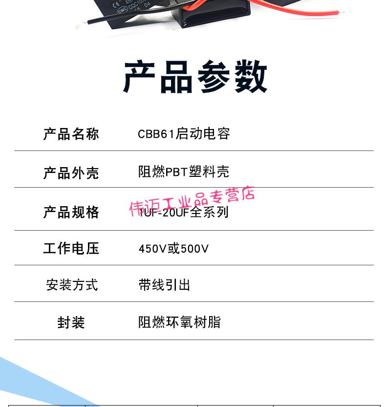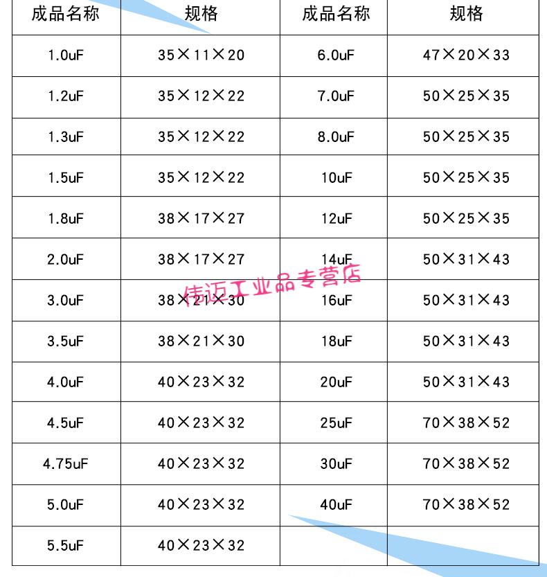Suitable for CBB61 starting capacitor motor fan hanging 1.2/1.5/1.8/2/2.5/3/4/5/6UF450V 16UF (450V)